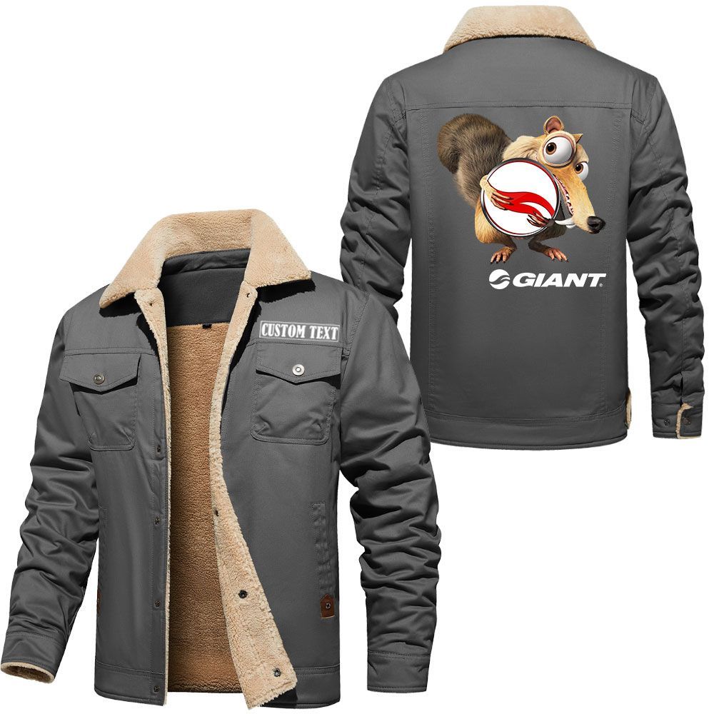Giant Bicycles Logo Custom Name Cargo Fleece Lined Cotton Jacket Scrat Ice Age Design Personalized Outerwear