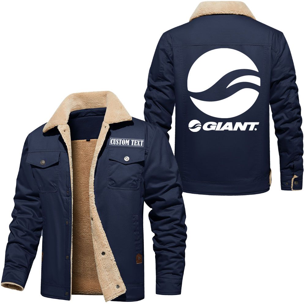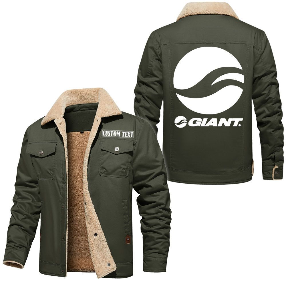 Giant Bicycles Logo Custom Name Cargo Fleece Lined Cotton Jacket Stylish Warm Personalized Outerwear