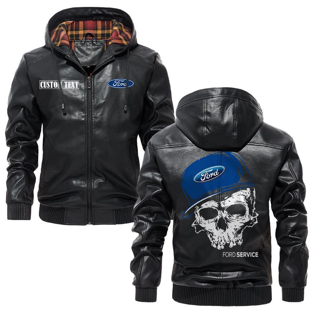 Giant Bicycles Logo Custom Name Leather Hoodie Jacket Warm Outerwear with Skull Design