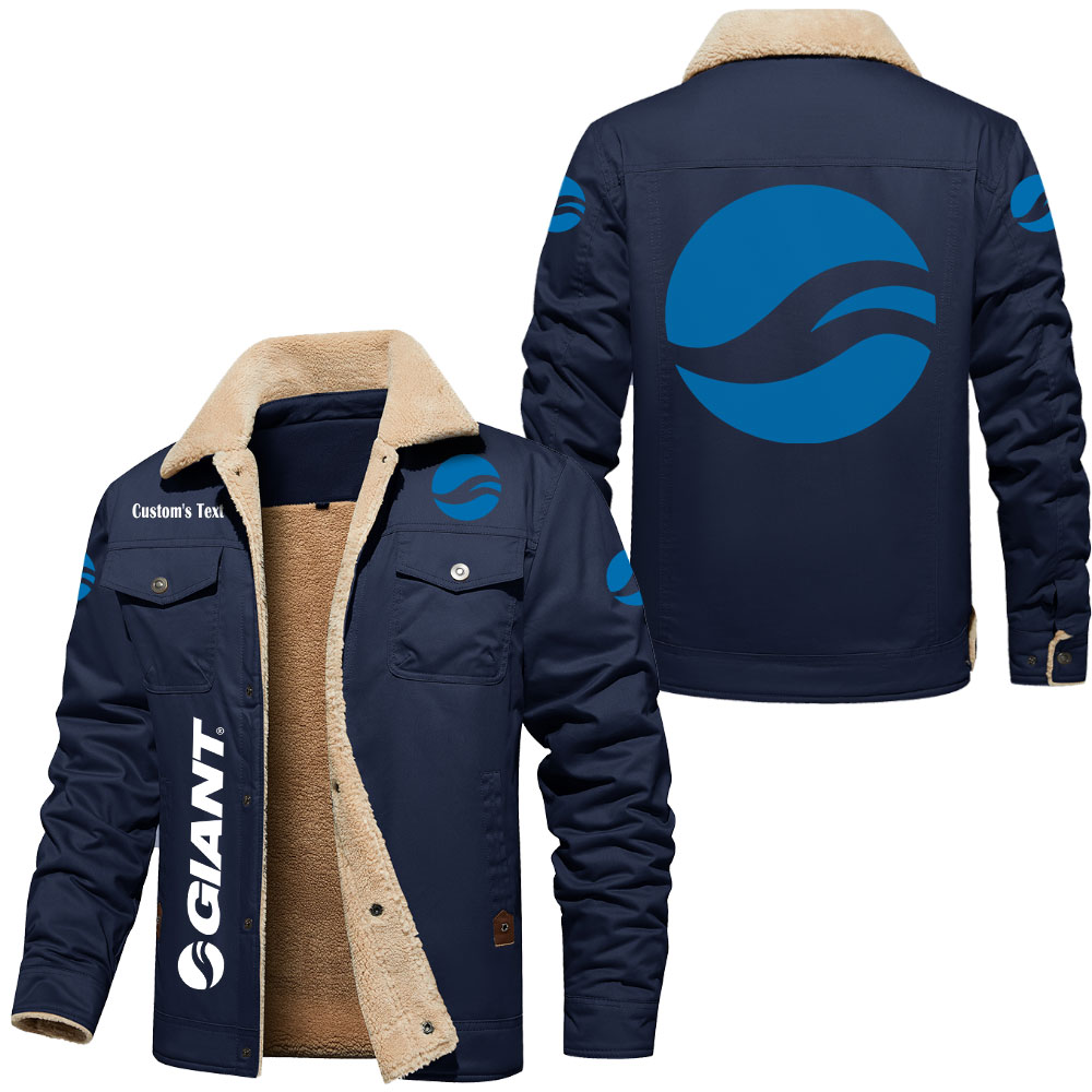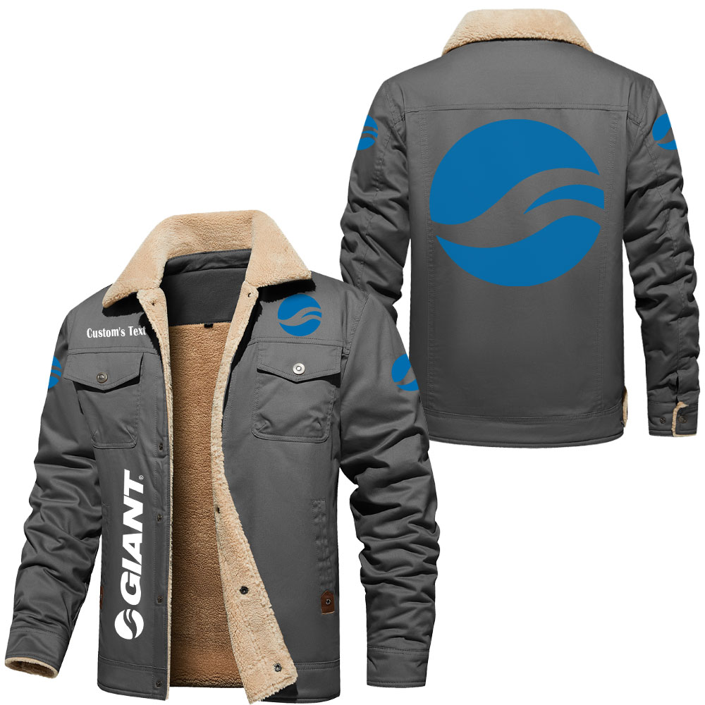 Giant Bicycles Logo Custom Text Cargo Fleece Lined Cotton Jacket