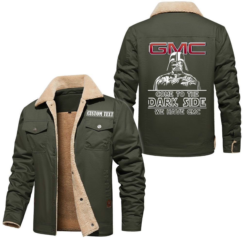GMC Logo Custom Name Cargo Fleece Lined Cotton Jacket Personalized Outerwear with Dark Side Star Wars Design