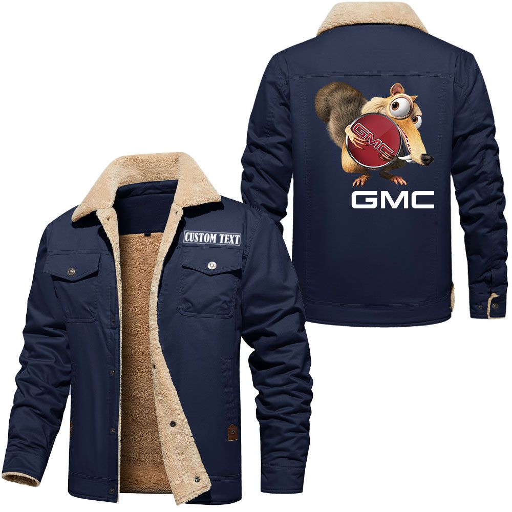 GMC Logo Custom Name Cargo Fleece Lined Cotton Jacket Scrat Ice Age Design Personalized Outerwear