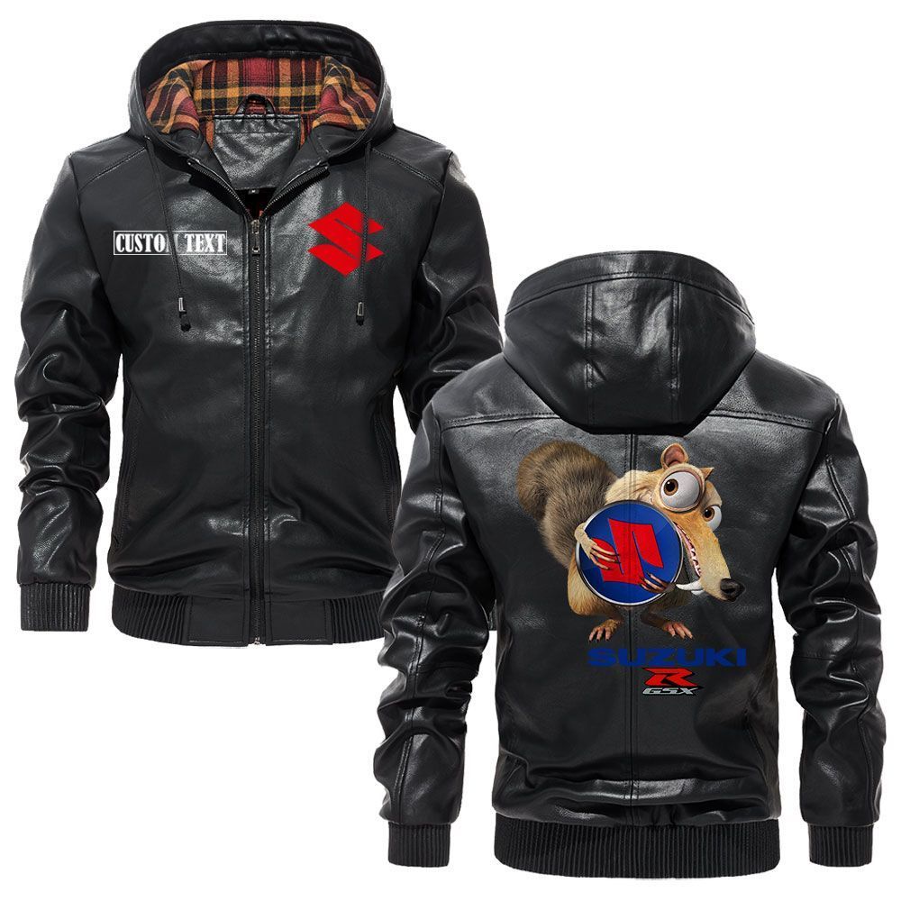 GMC Logo Custom Name Leather Hoodie Jacket Warm Outerwear with Ice Age Theme