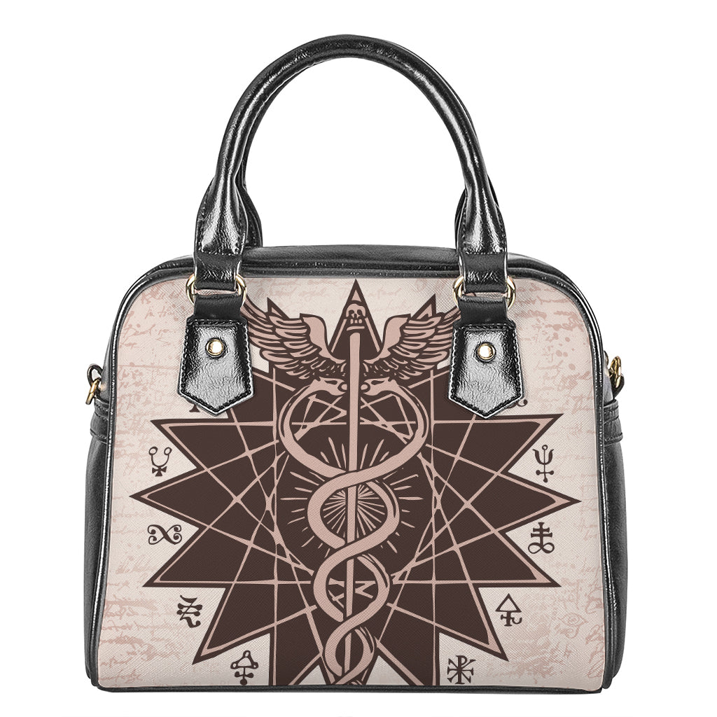 Gold Bitcoin Symbol Print Shoulder Handbag
