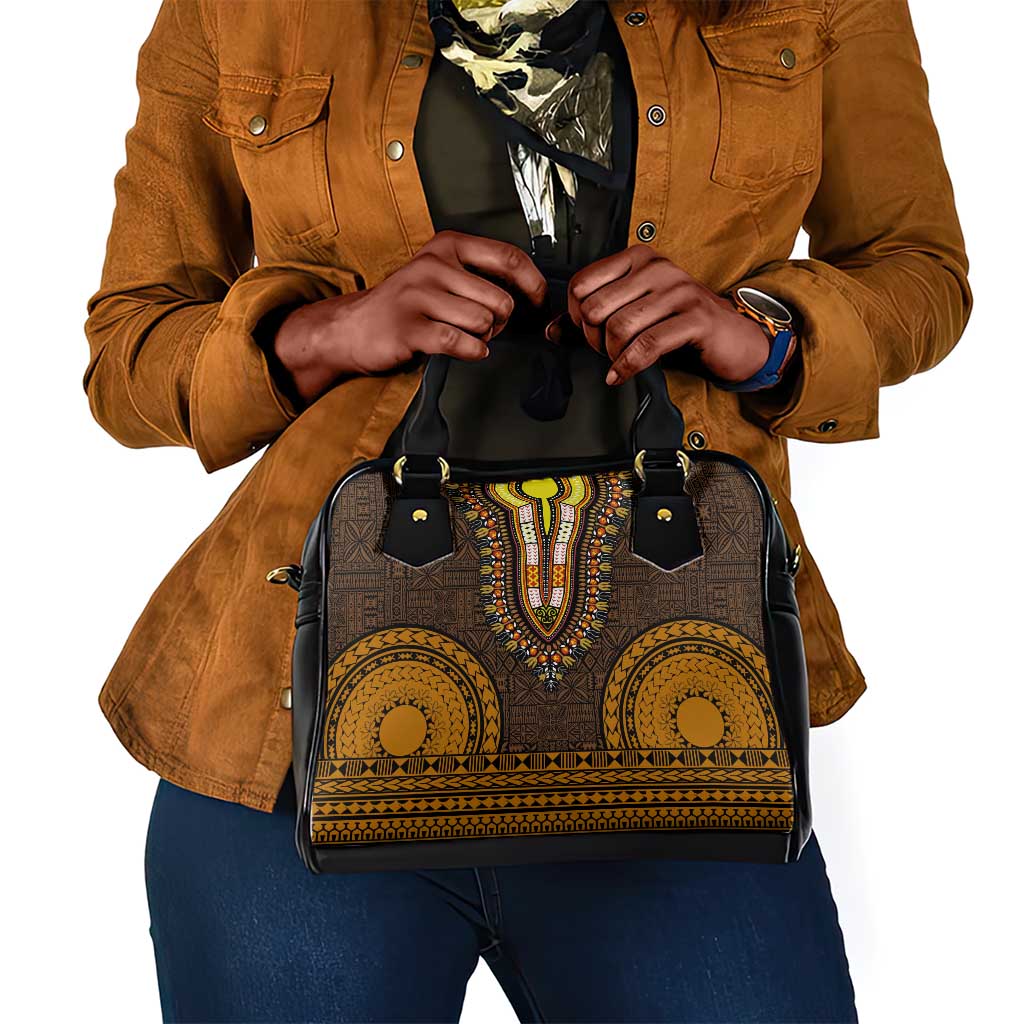 Gold Dashiki And Tapa Pattern Shoulder Handbag Africa Polynesia Together Culture