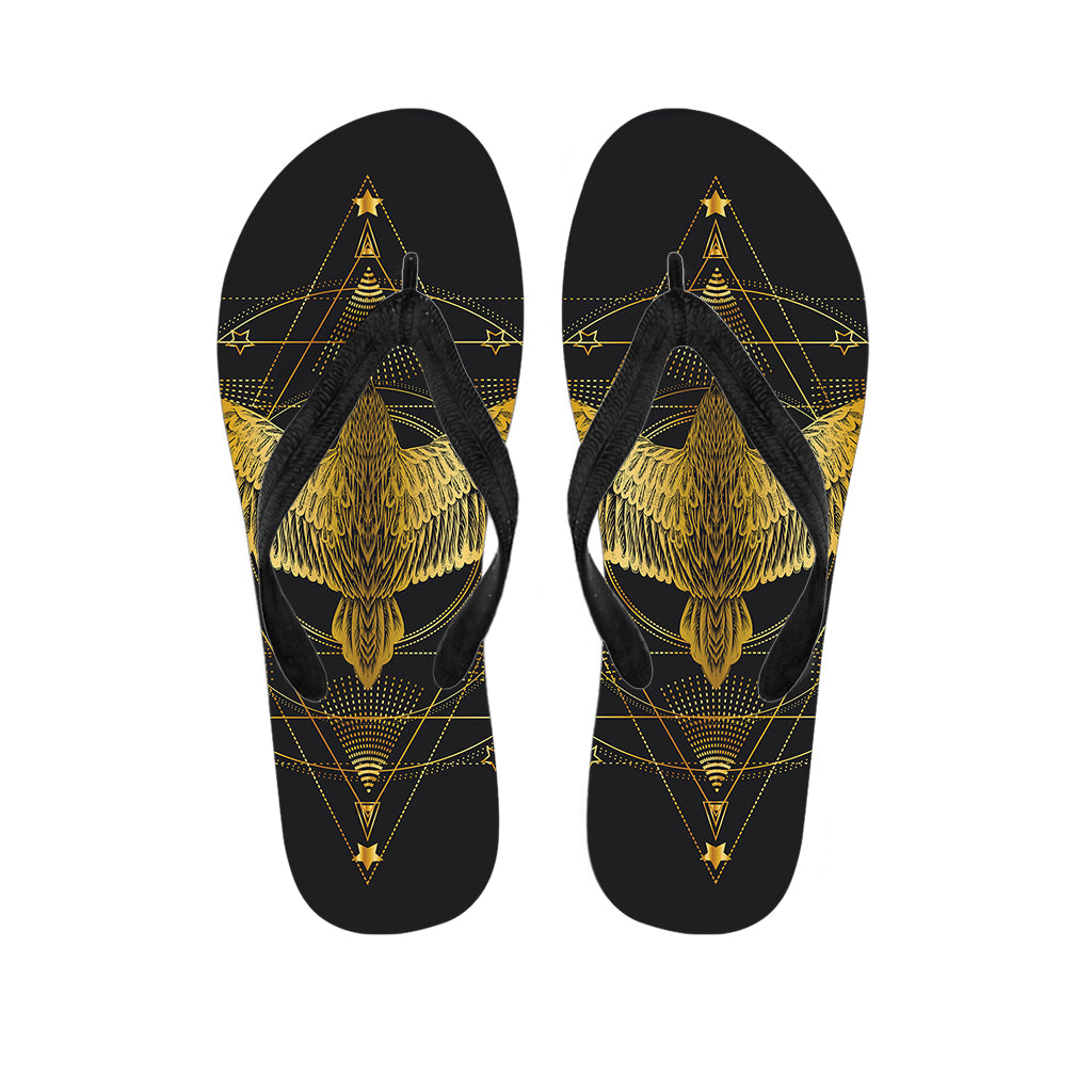 Golden Bohemian Howling Wolf Print Flip Flops For Men Women