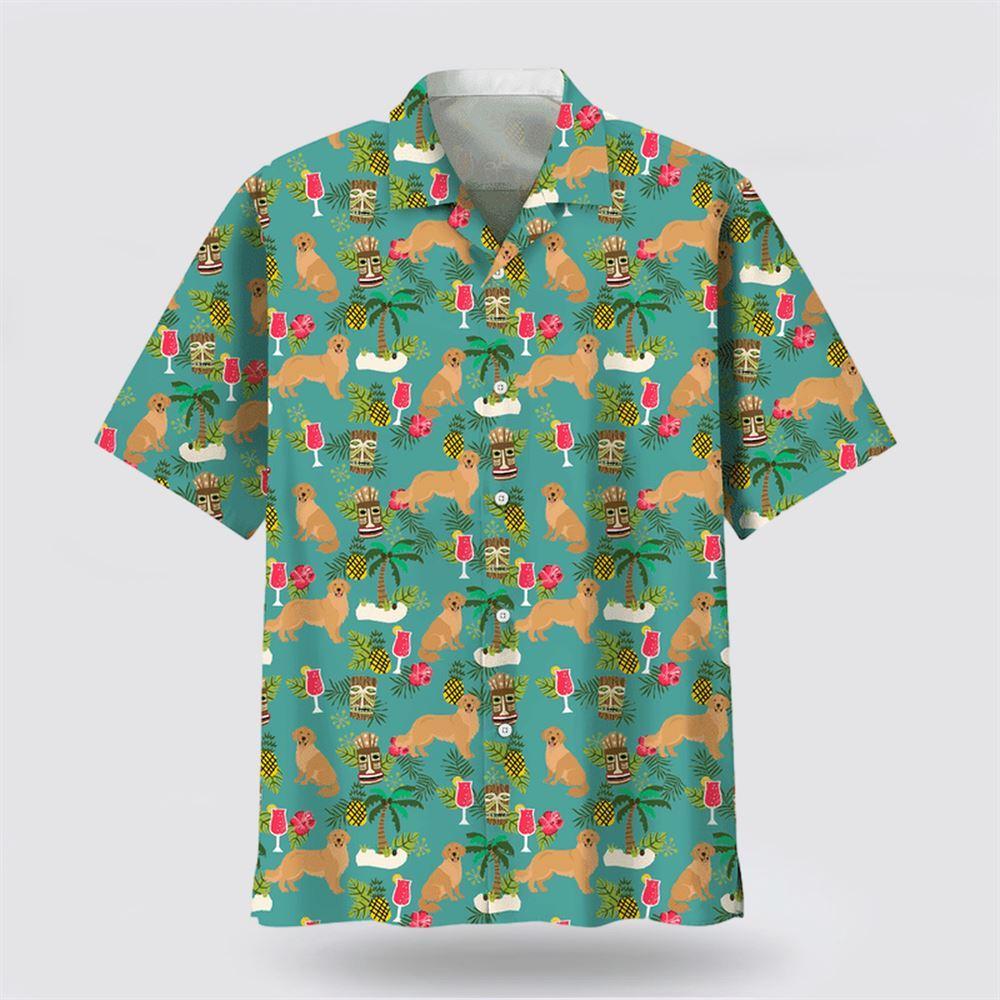 Golden Dog Leaves Green Tropic Pattern Hawaiian Shirt Gift For Dog Lover