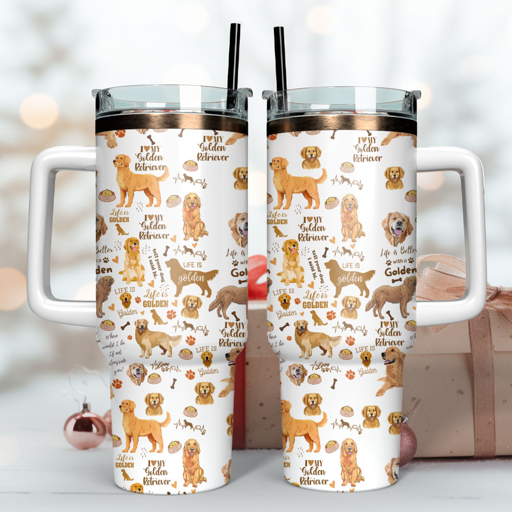 Golden Retriever Cute Dog Custom Stanley Quencher 40Oz Stainless Steel Tumbler With Handle