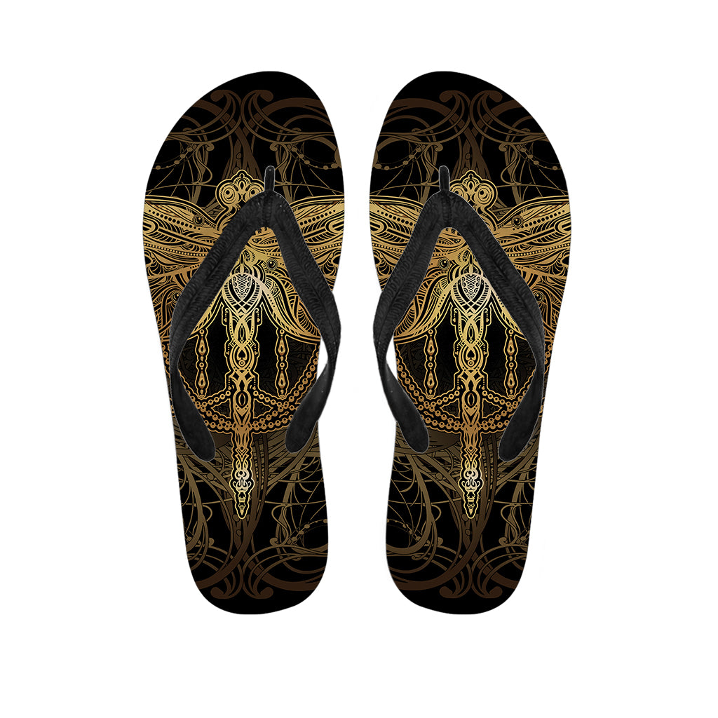 Golden Spiritual Lotus Print Flip Flops For Men Women