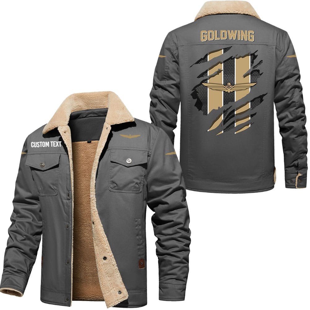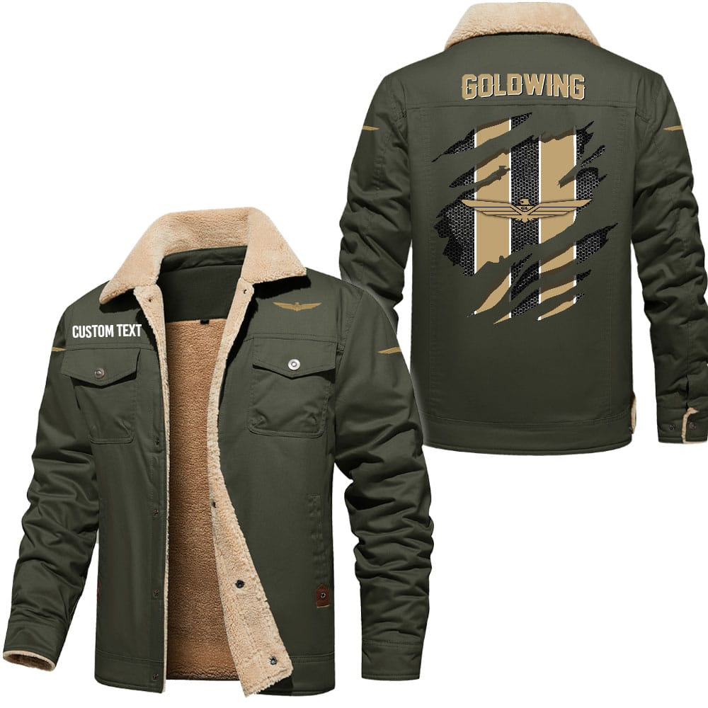 Goldwing Logo Custom Name Cargo Fleece Lined Cotton Jacket