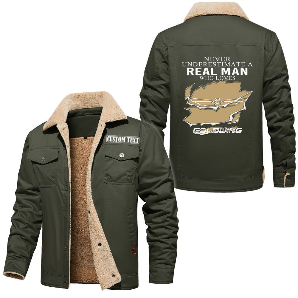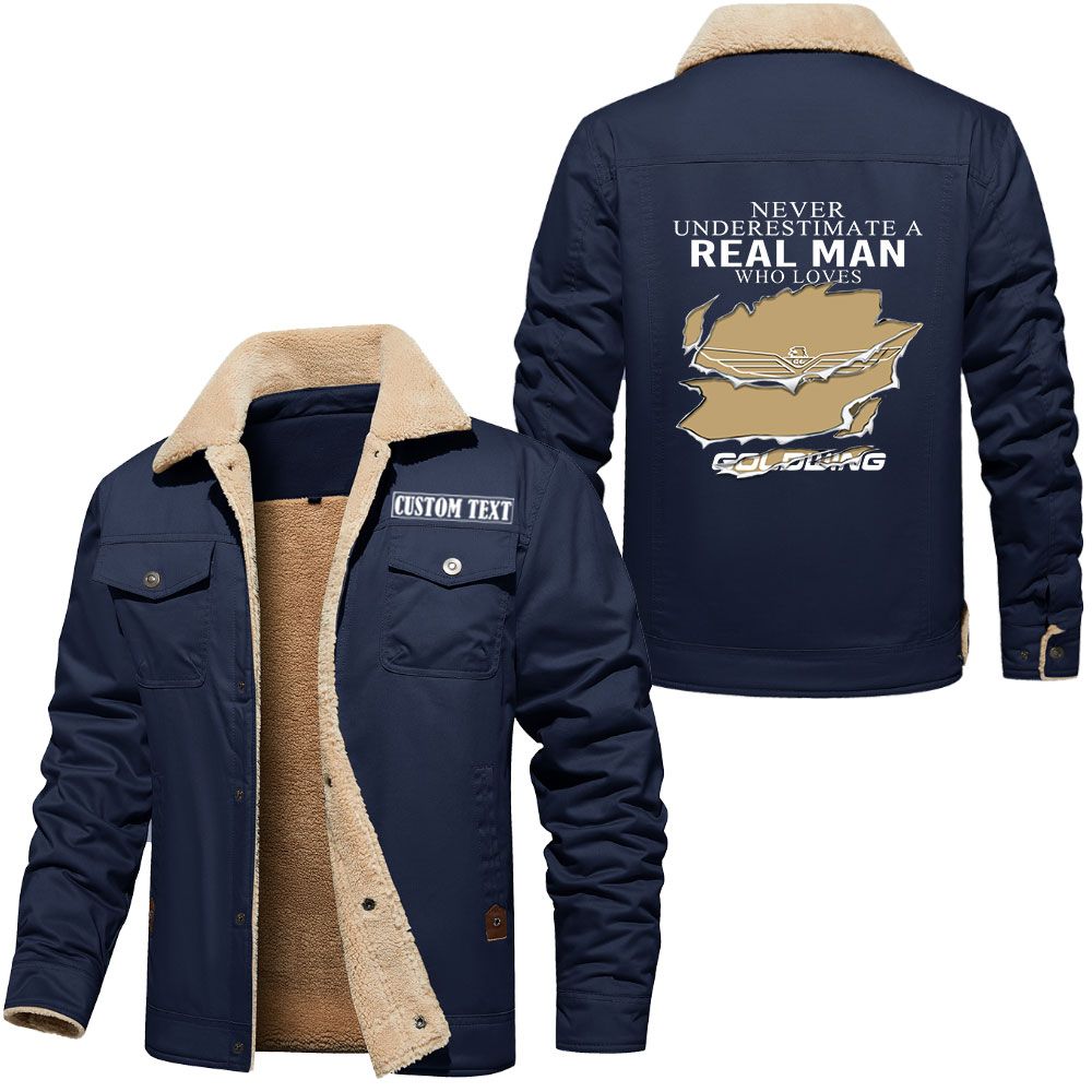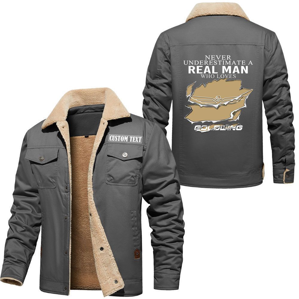 Goldwing Logo Custom Name Cargo Fleece Lined Cotton Jacket A Real Man Who Loves Personalized Outerwear