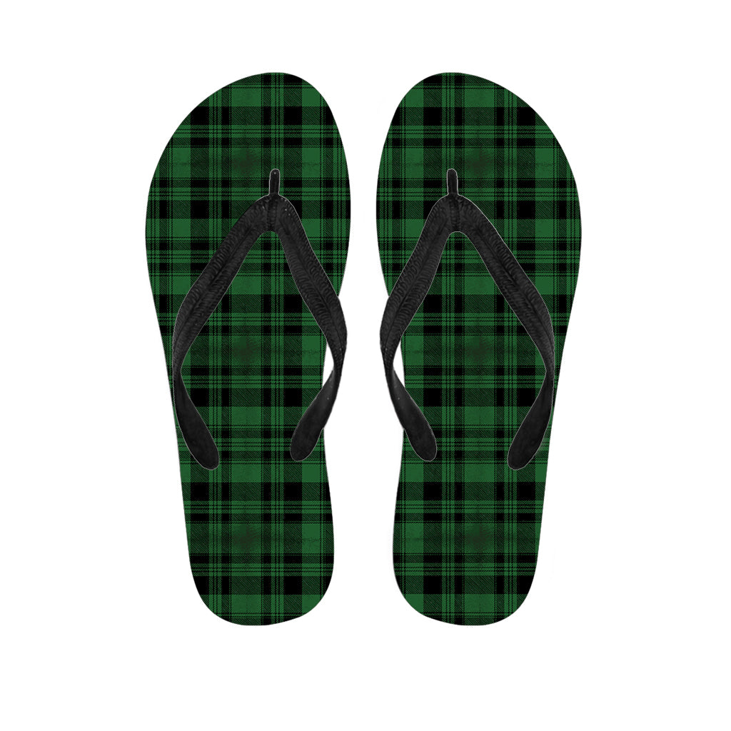 Green And Orange Buffalo Plaid Print Flip Flops For Men Women