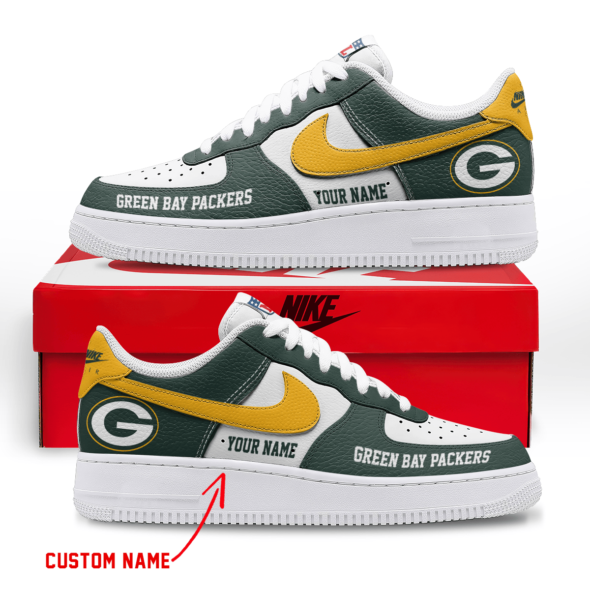 Green Bay Packers Air Low-Top Sneakers Shoes Comfortable For Men And Women Printed Full Size