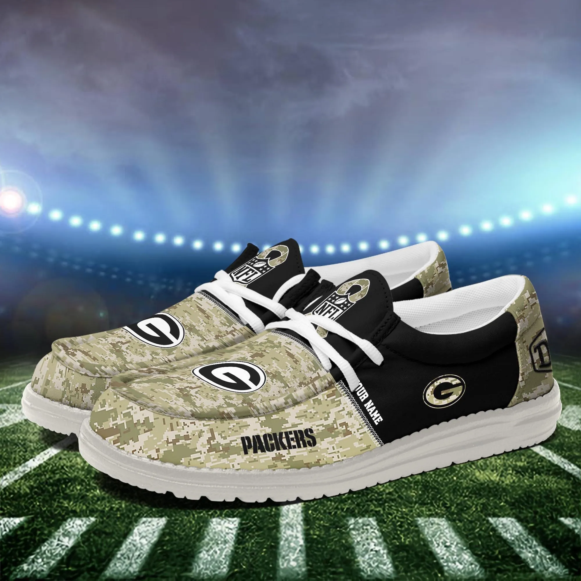 Green Bay Packers Custom Name Dude Shoes Camo