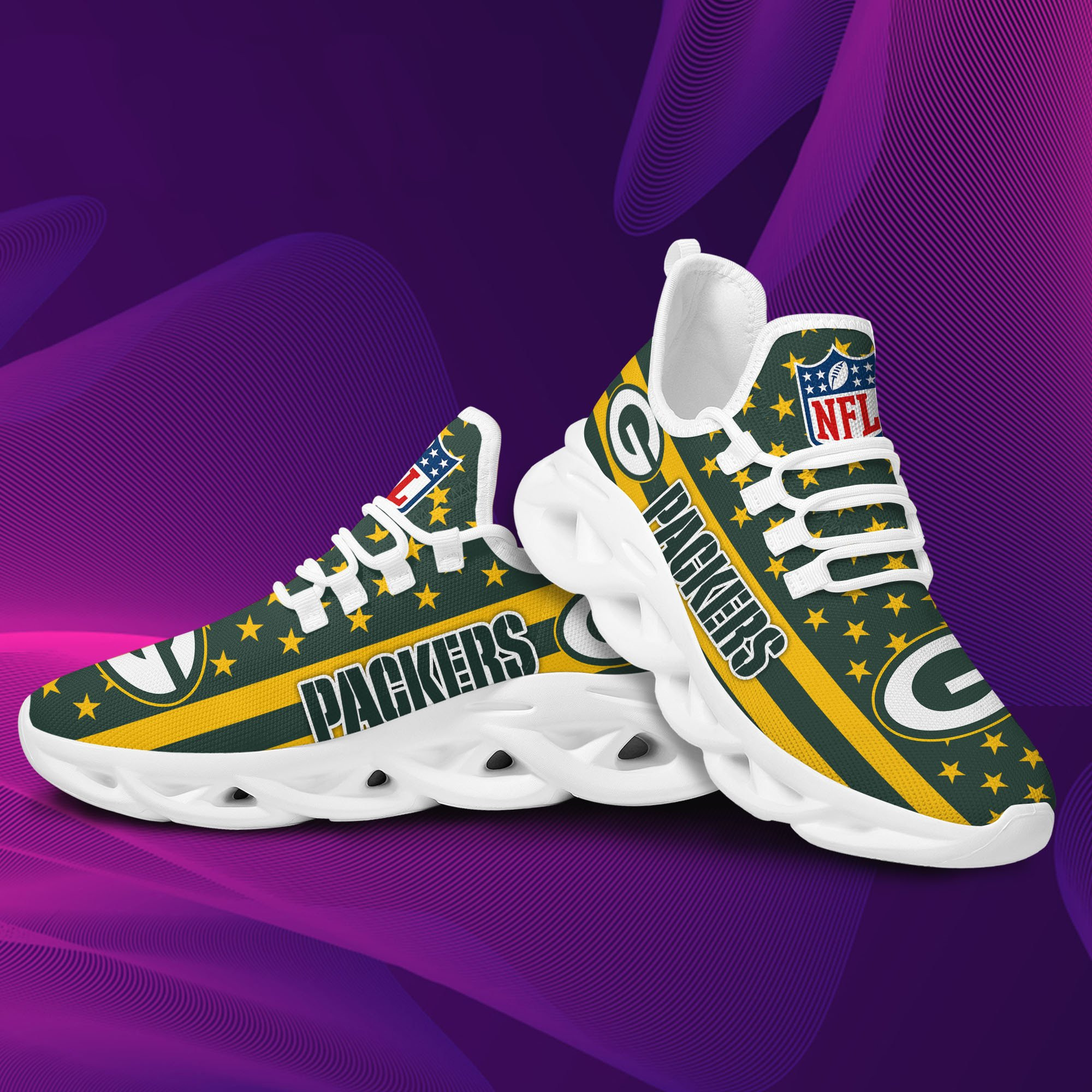 Green Bay Packers NFL Max Soul Shoes Sneakers Printed White And Black Sole For Men And Women