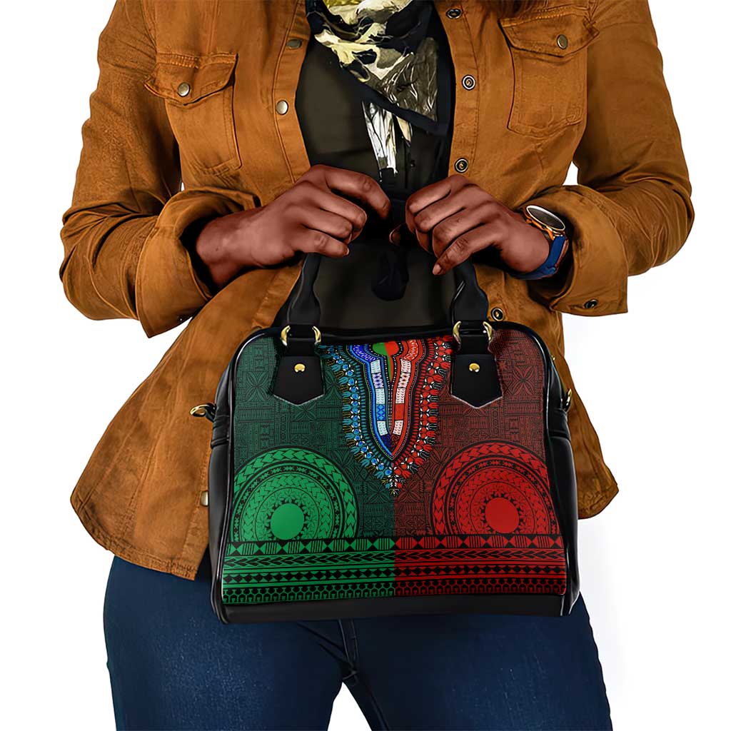 Green Red Dashiki And Tapa Pattern Shoulder Handbag Africa Polynesia Together Culture