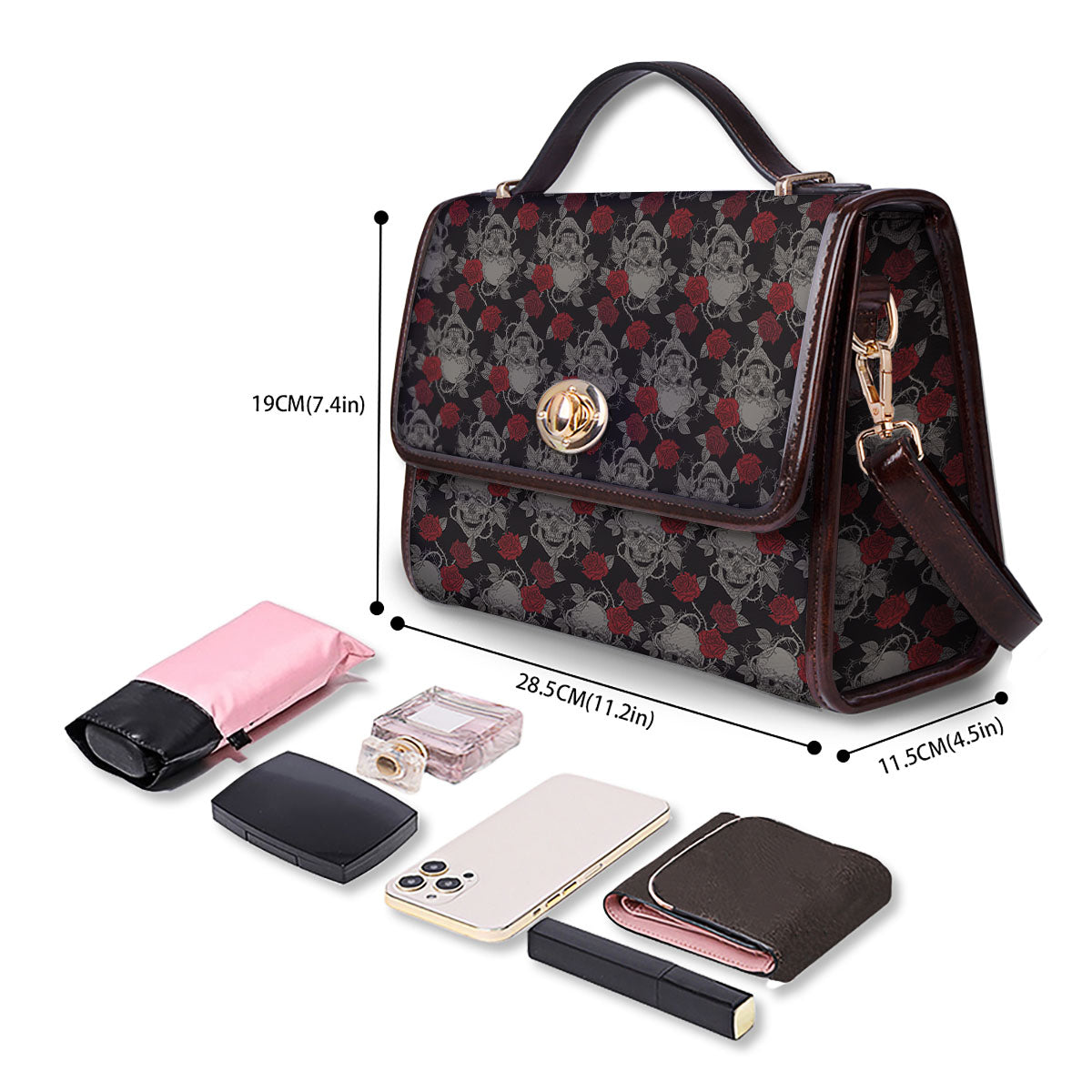 Grey Skull Red Rose Print Pattern Women’s Satchel Bag