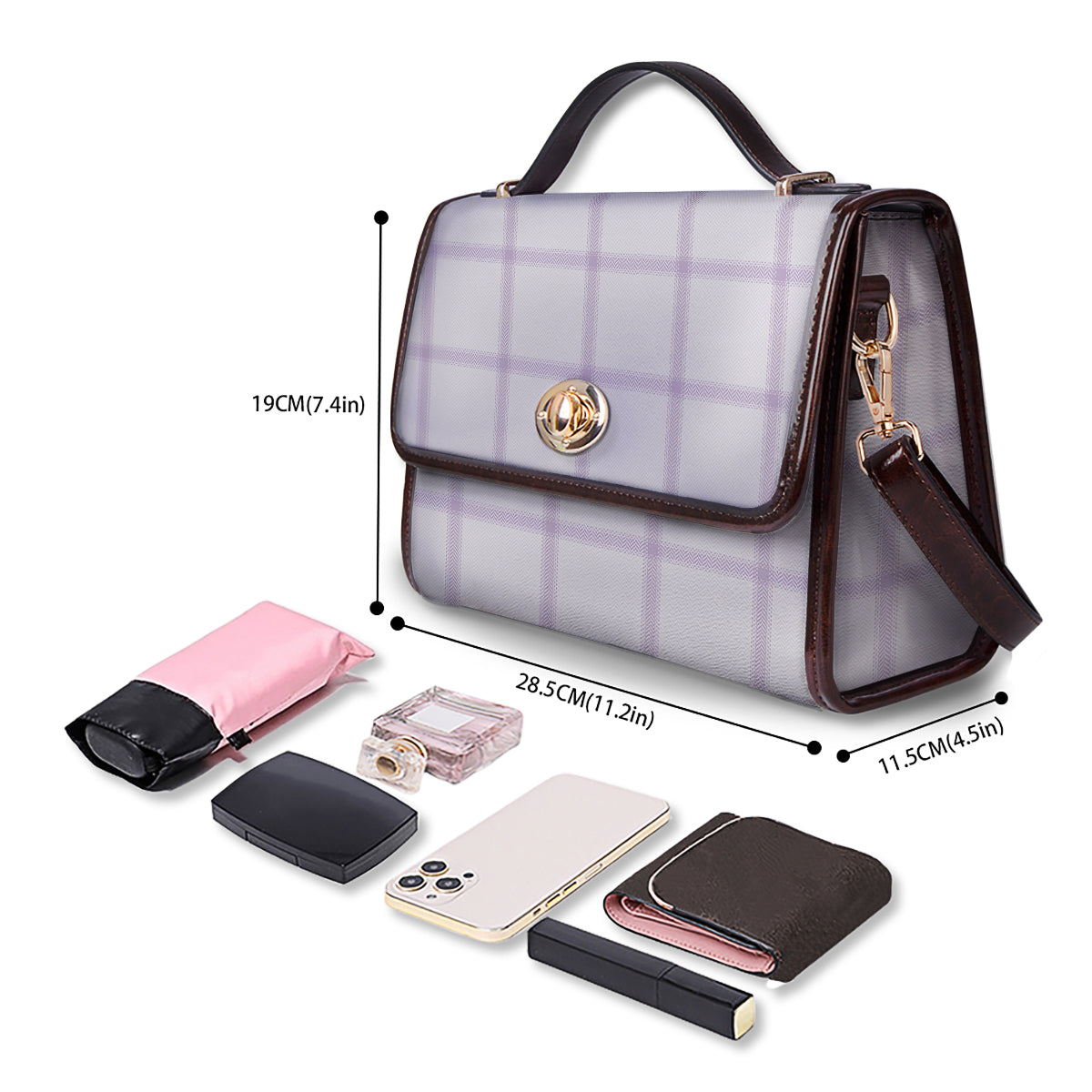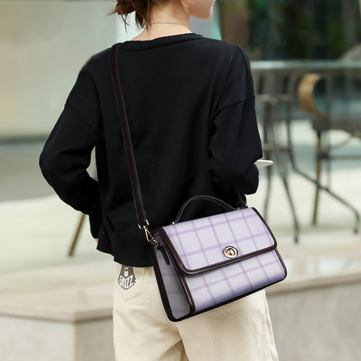 Grey White And Purple Tattersall Print Pattern Women’s Satchel Bag