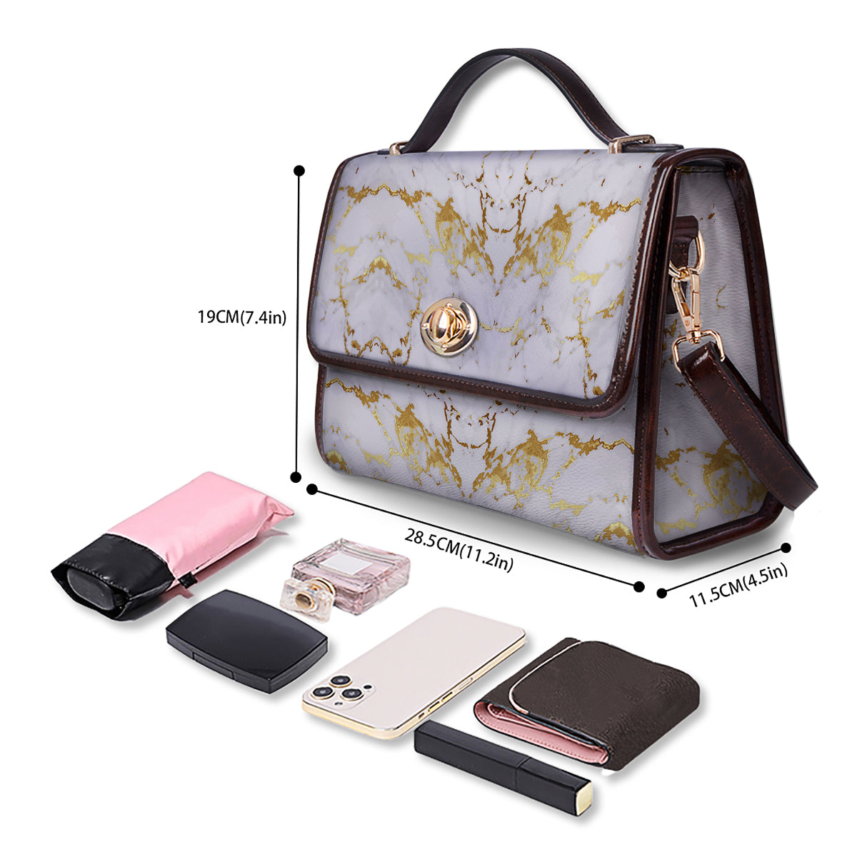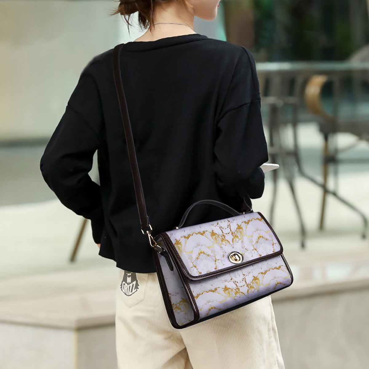 Grunge Marble White Gold Print Pattern Women’s Satchel Bag
