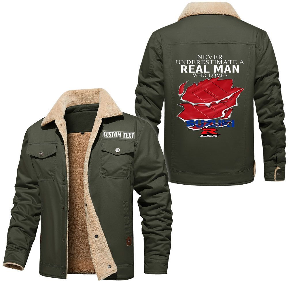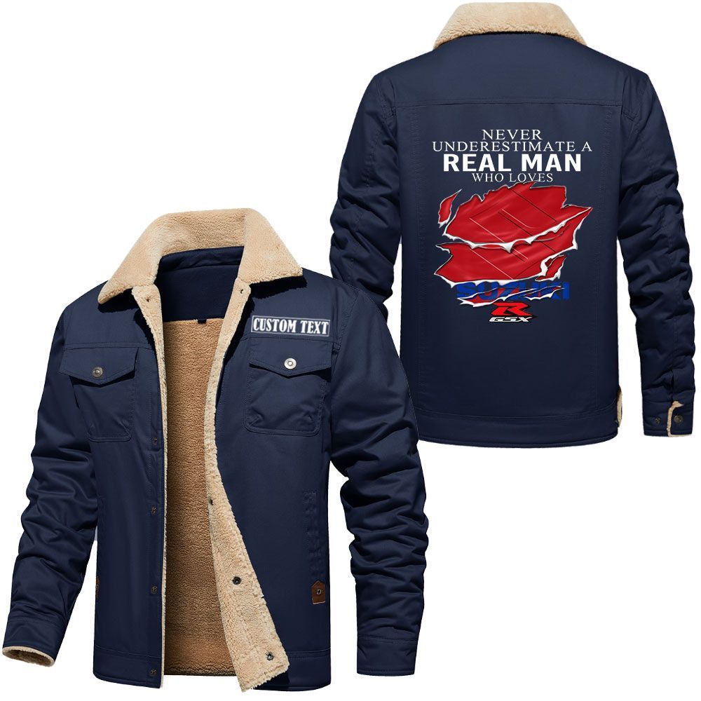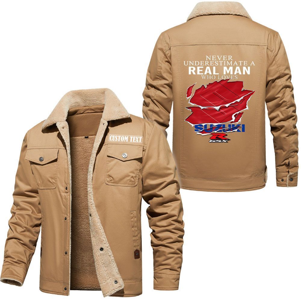 Gsx Logo Custom Name Cargo Fleece Lined Cotton Jacket A Real Man Who Loves Personalized Outerwear