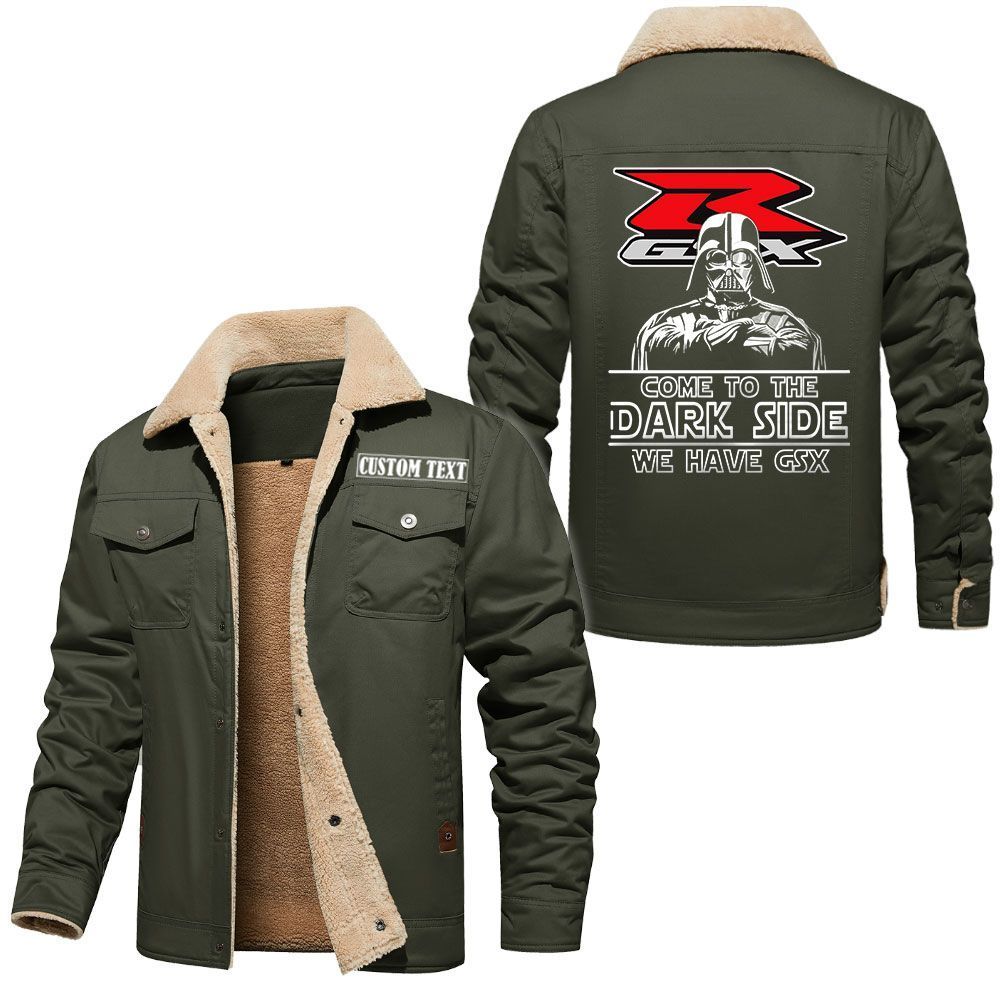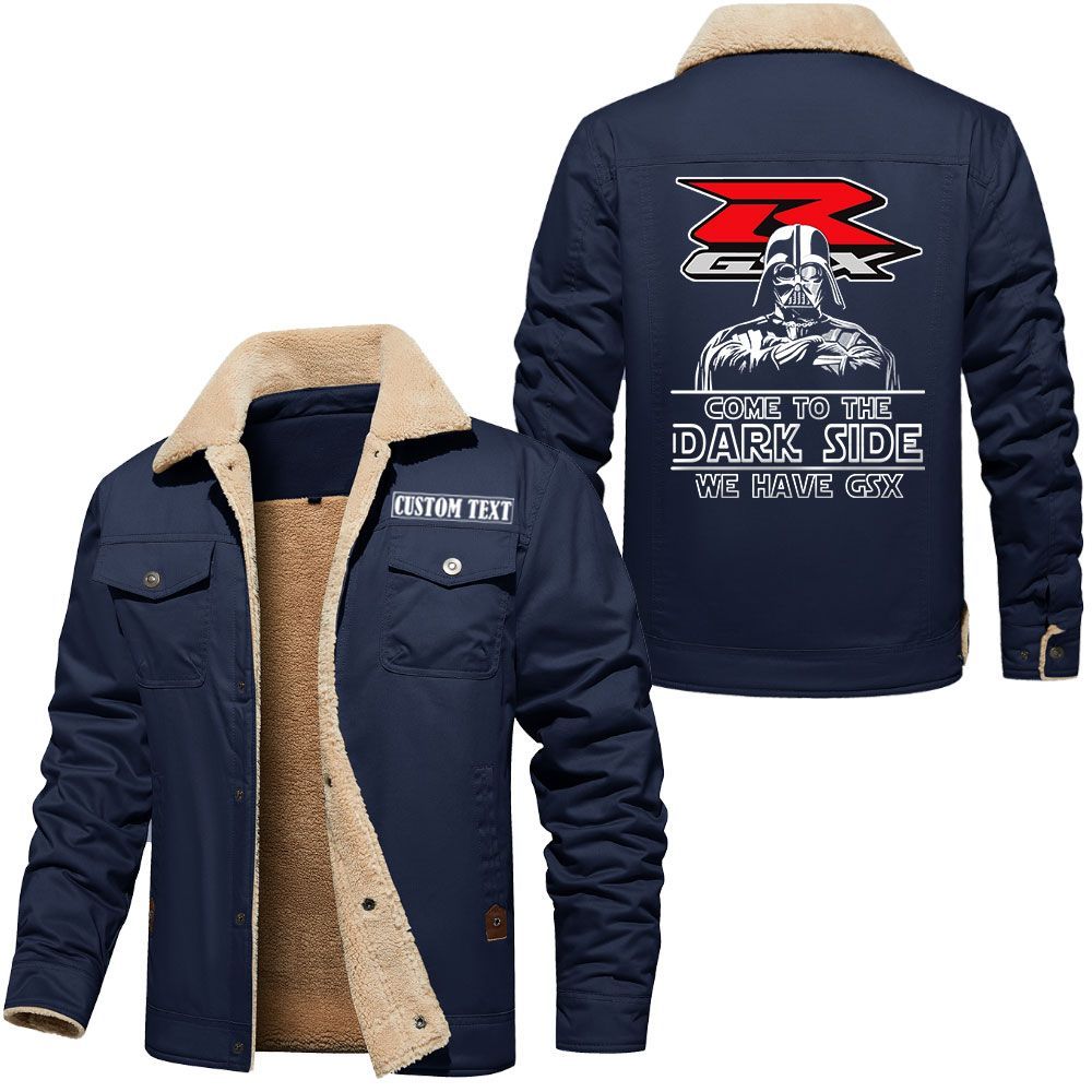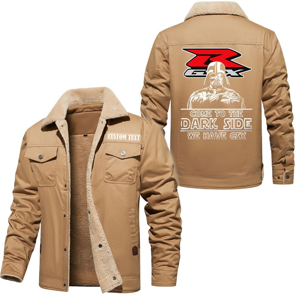 Gsx Logo Custom Name Cargo Fleece Lined Cotton Jacket Personalized Outerwear with Dark Side Star Wars Design