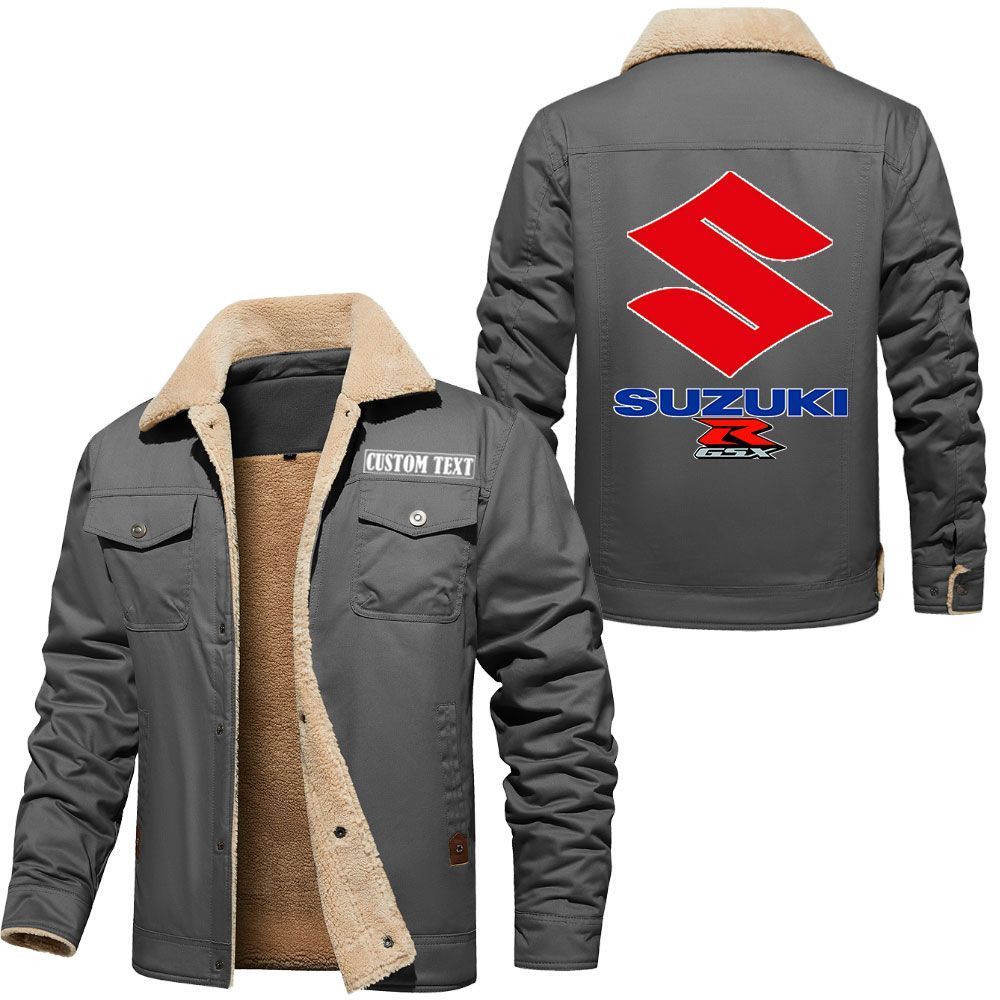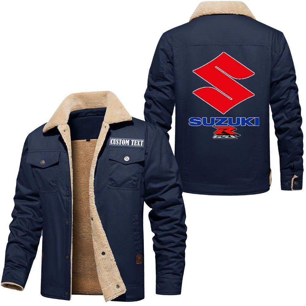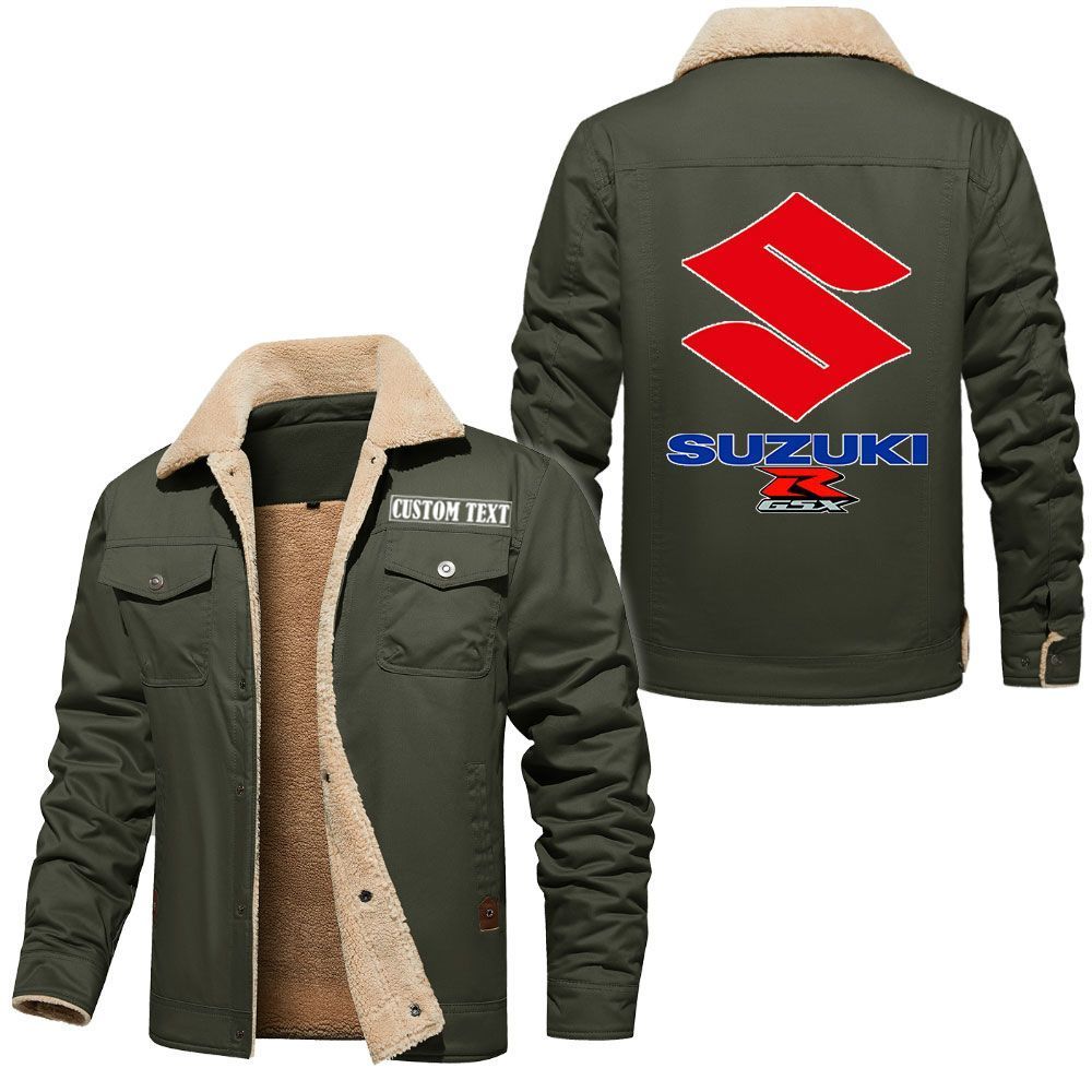 Gsx Logo Custom Name Cargo Fleece Lined Cotton Jacket Stylish Warm Personalized Outerwear