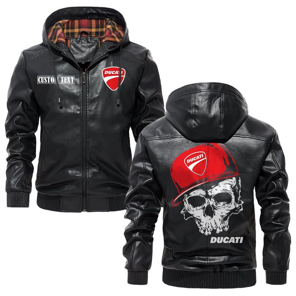 Gsx Logo Custom Name Leather Hoodie Jacket Warm Outerwear with Skull Design