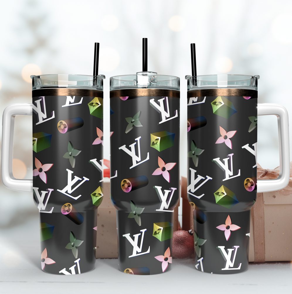 Gucci Logo Glitter Metallic Holographic Pattern Custom Stanley Quencher 40Oz Stainless Steel Tumbler With Handle