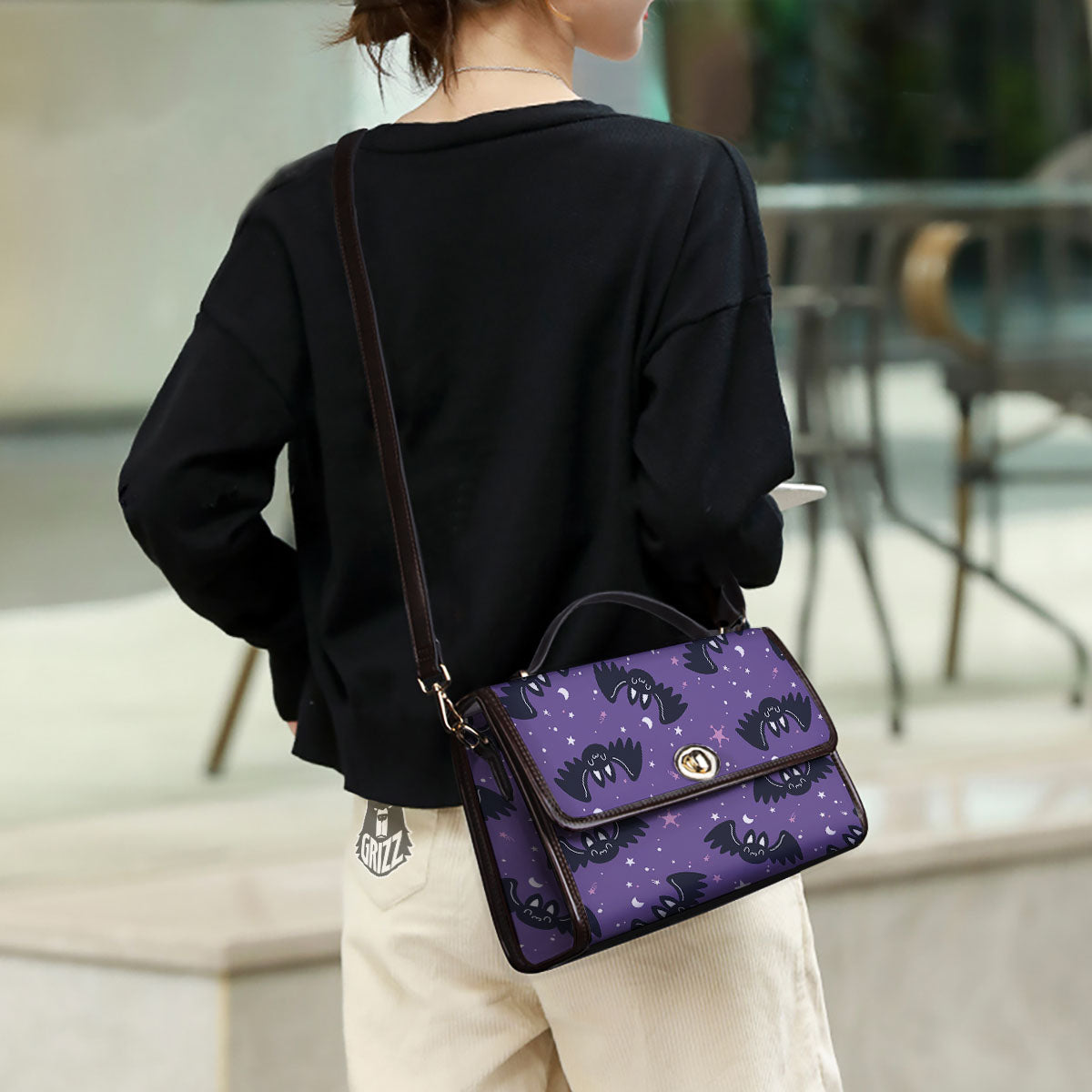 Halloween Bat Black And Purple Print Women’s Satchel Bag