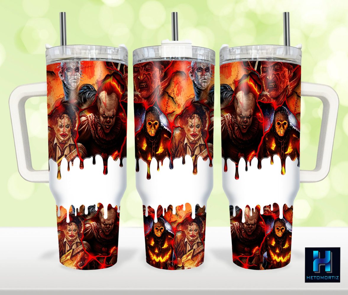 Halloween Horror Characters Movies Custom Stanley Quencher 40Oz Stainless Steel Tumbler With Handle