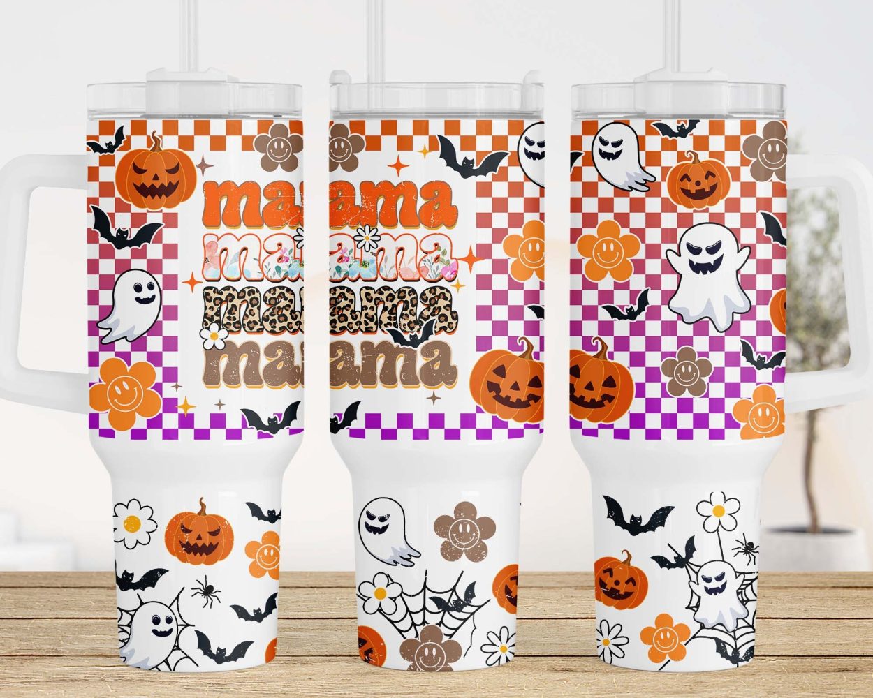 Halloween Retro Checkered Mama Custom Stanley Quencher 40Oz Stainless Steel Tumbler With Handle