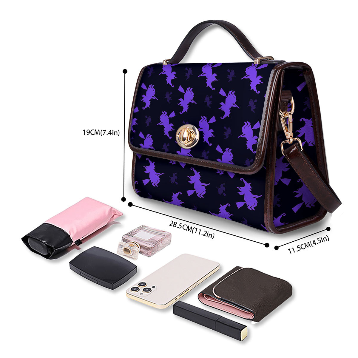 Halloween Witch Purple Print Pattern Women’s Satchel Bag