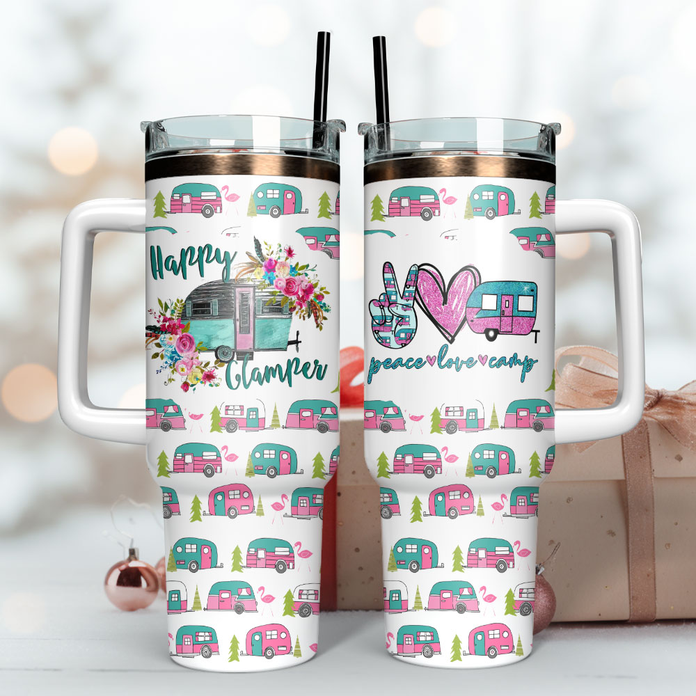 Happy Glamper Artwork Custom Stanley Quencher 40Oz Stainless Steel Tumbler With Handle