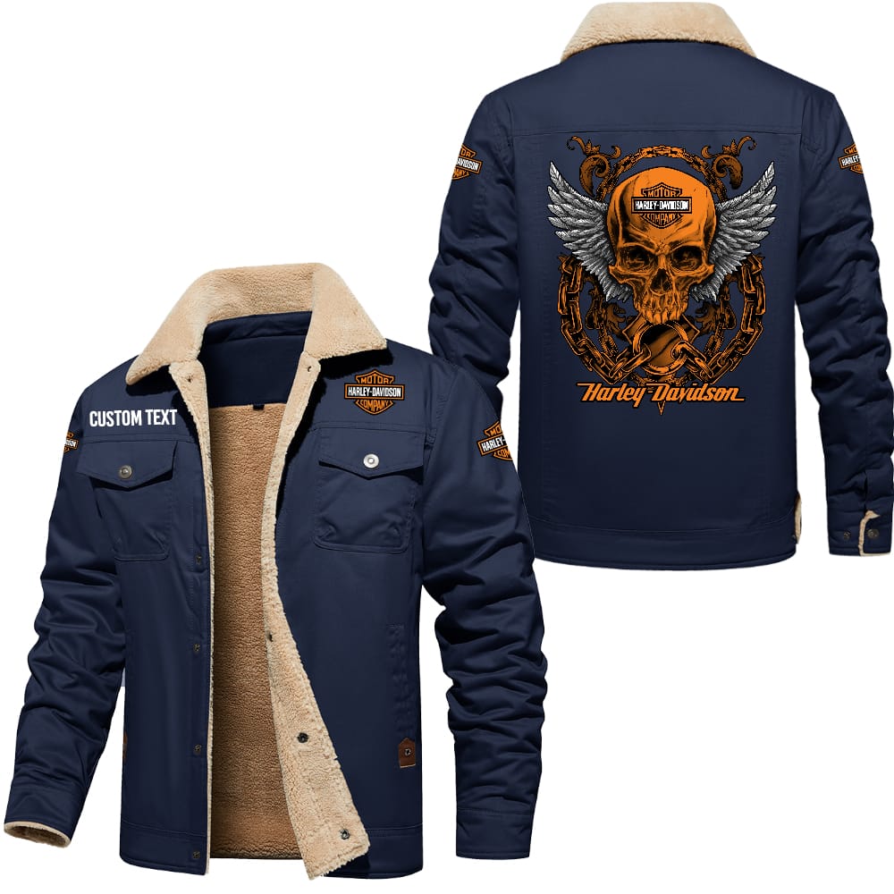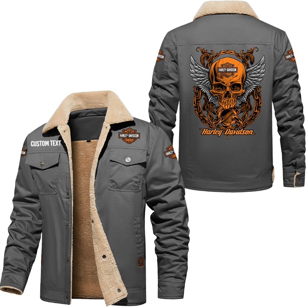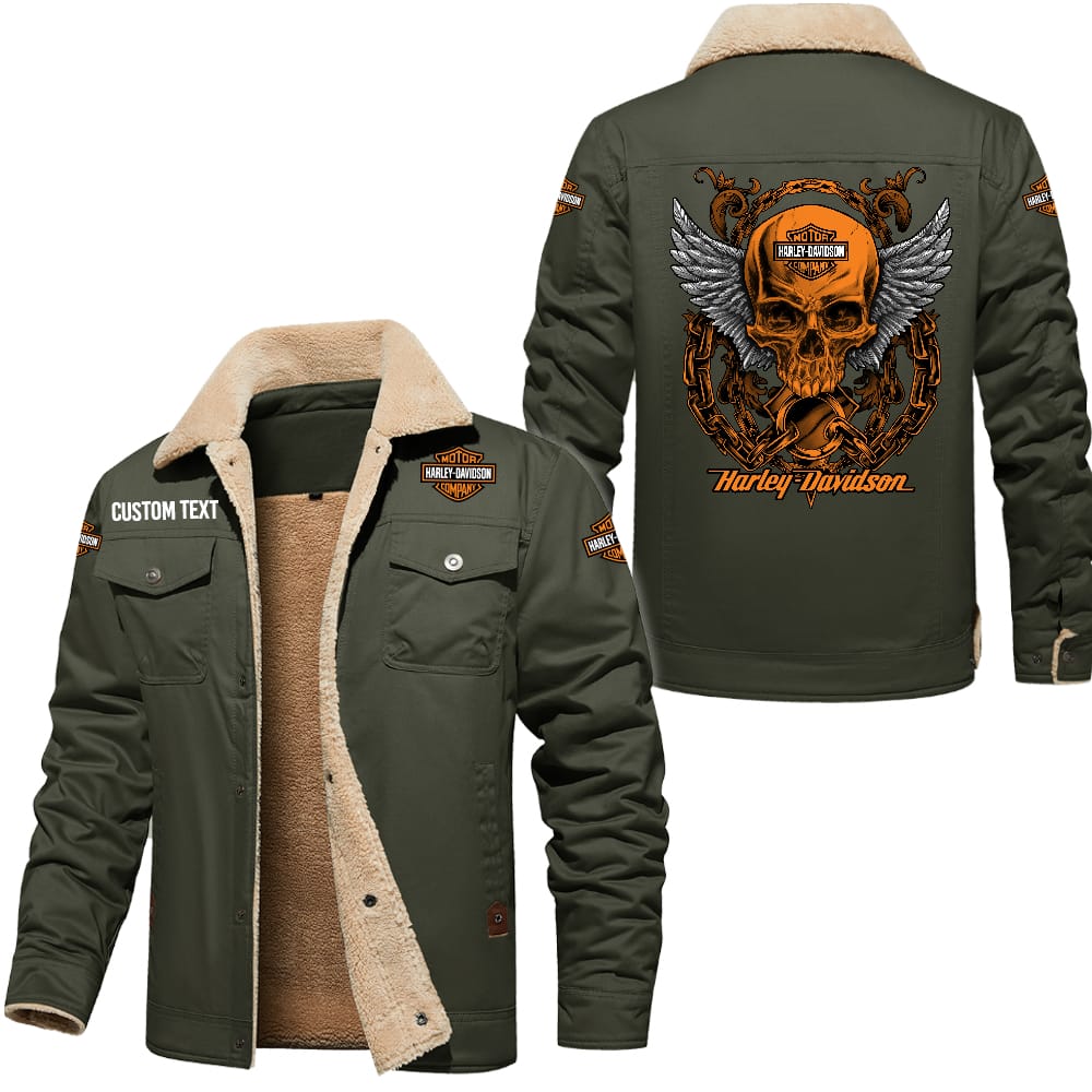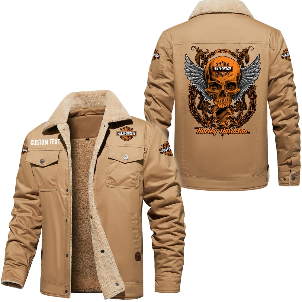 Harley Davidson Custom Name Skull Design Cargo Fleece Lined Cotton Jacket