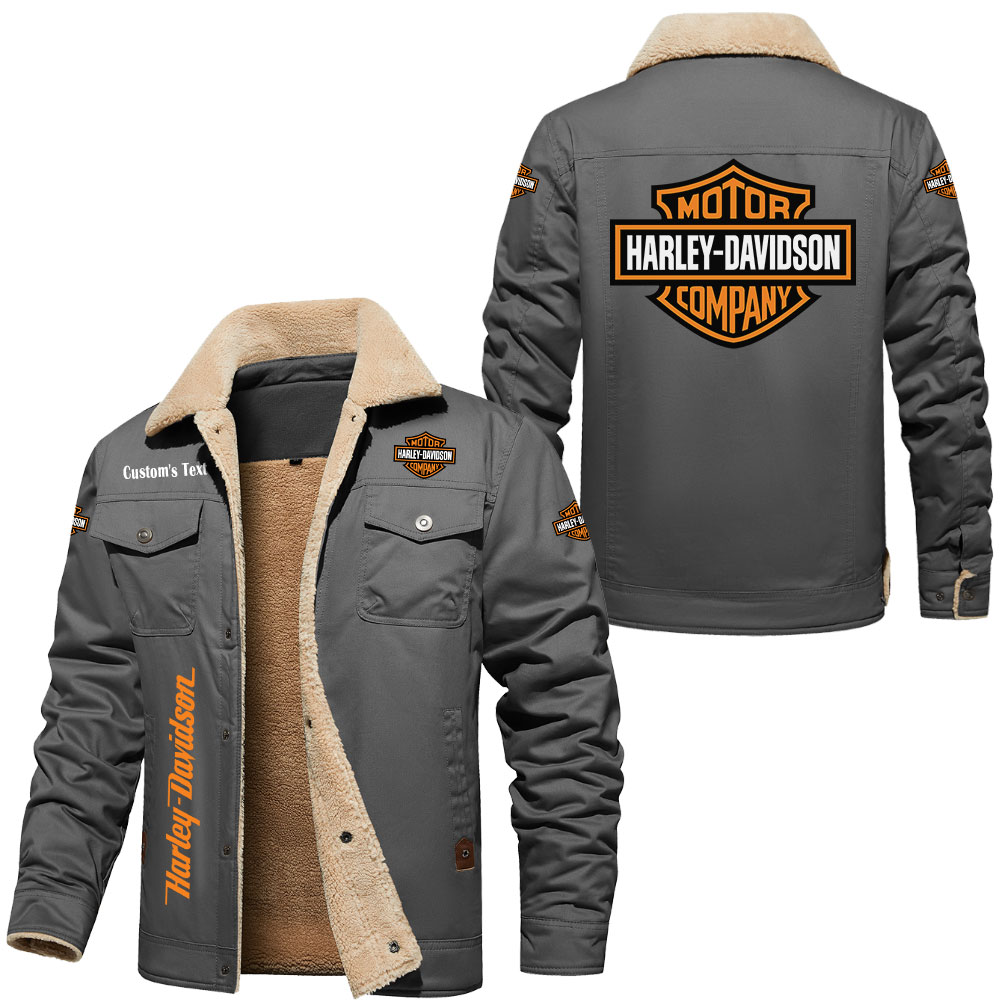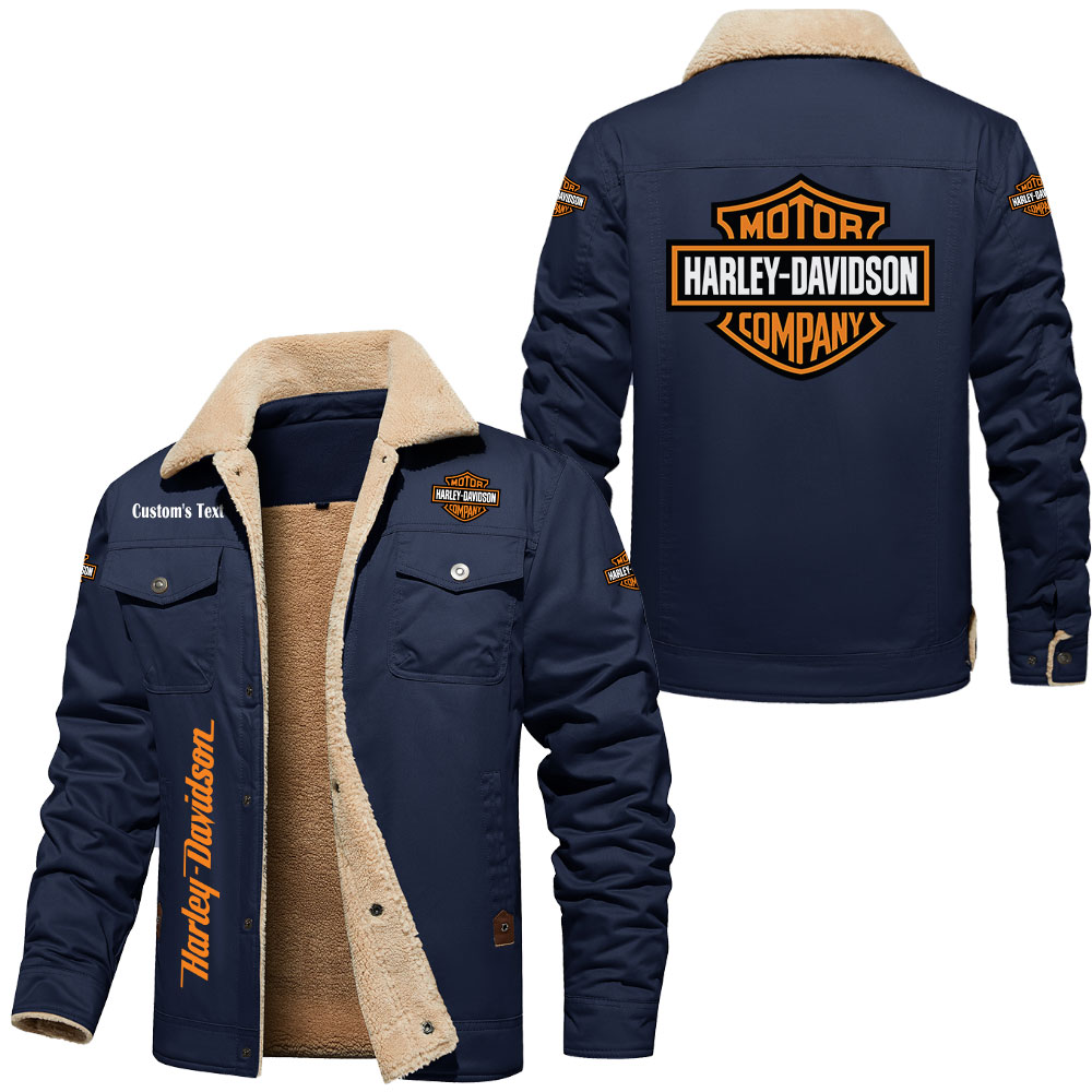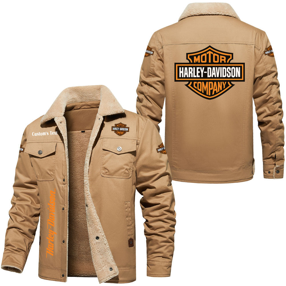 Harley Davidson Logo Custom Text Cargo Fleece Lined Cotton Jacket