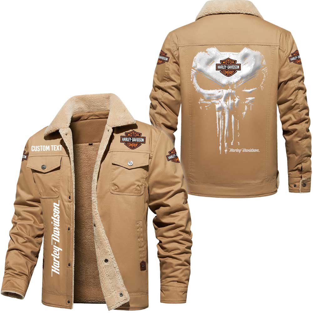 Harley Davidson Logo Skull Design Custom Text Cargo Fleece Lined Cotton Jacket