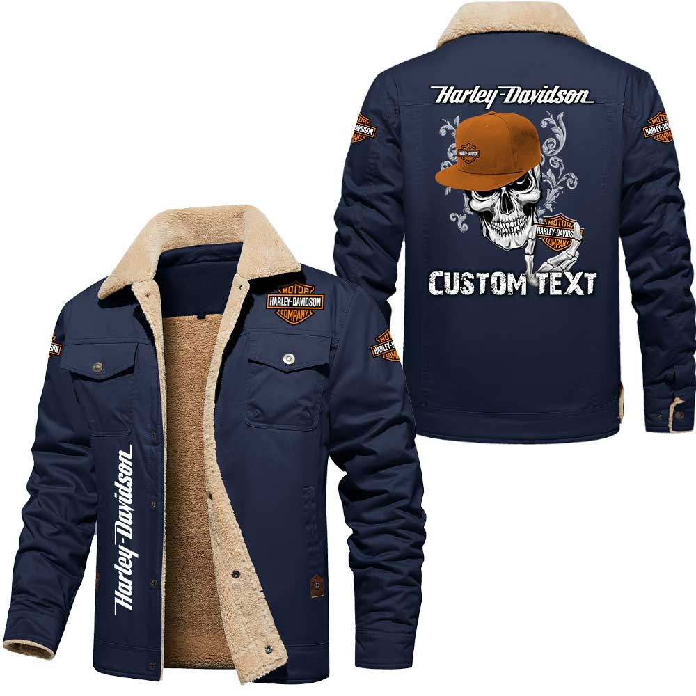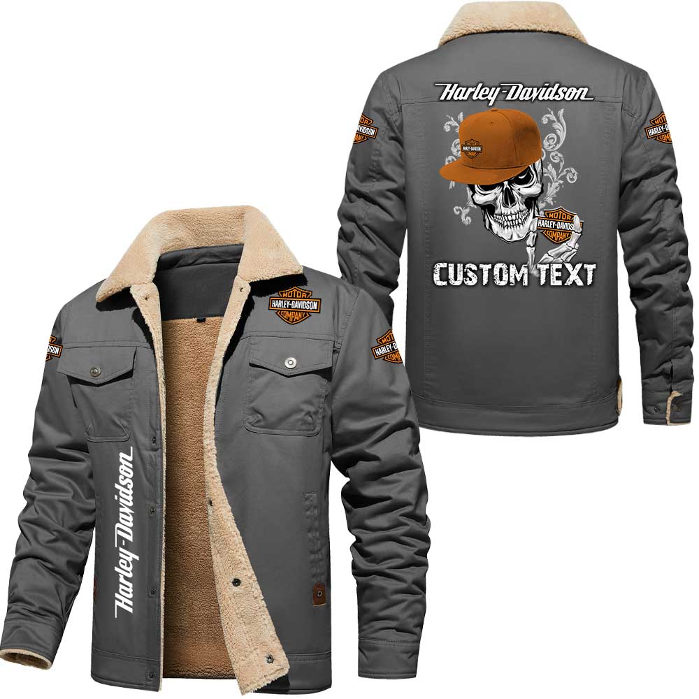 Harley Davidson Skull Custom Name Cargo Fleece Lined Cotton Jacket