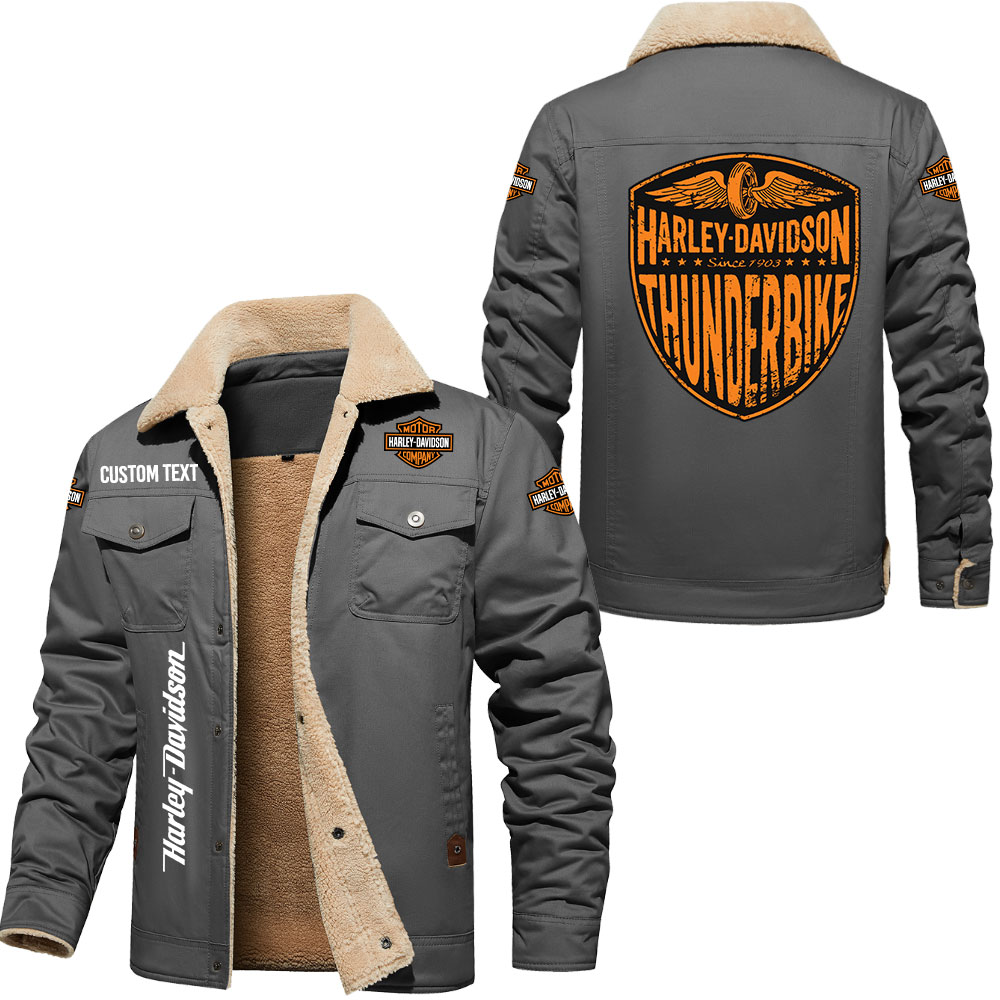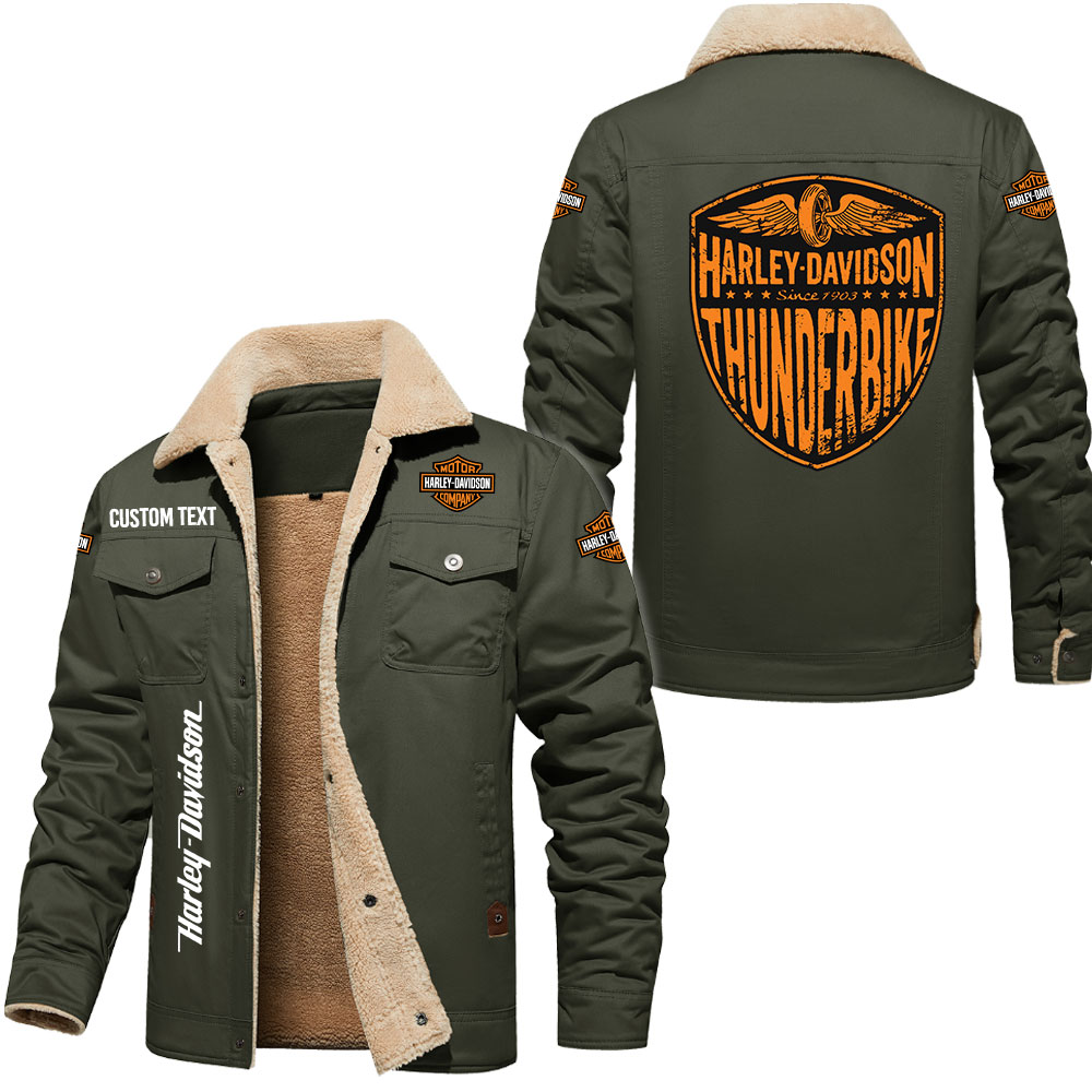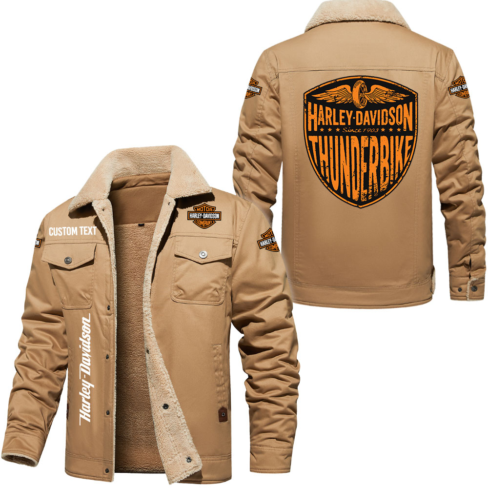 Harley Davidson Thunderbike Custom Name Cargo Fleece Lined Cotton Jacket