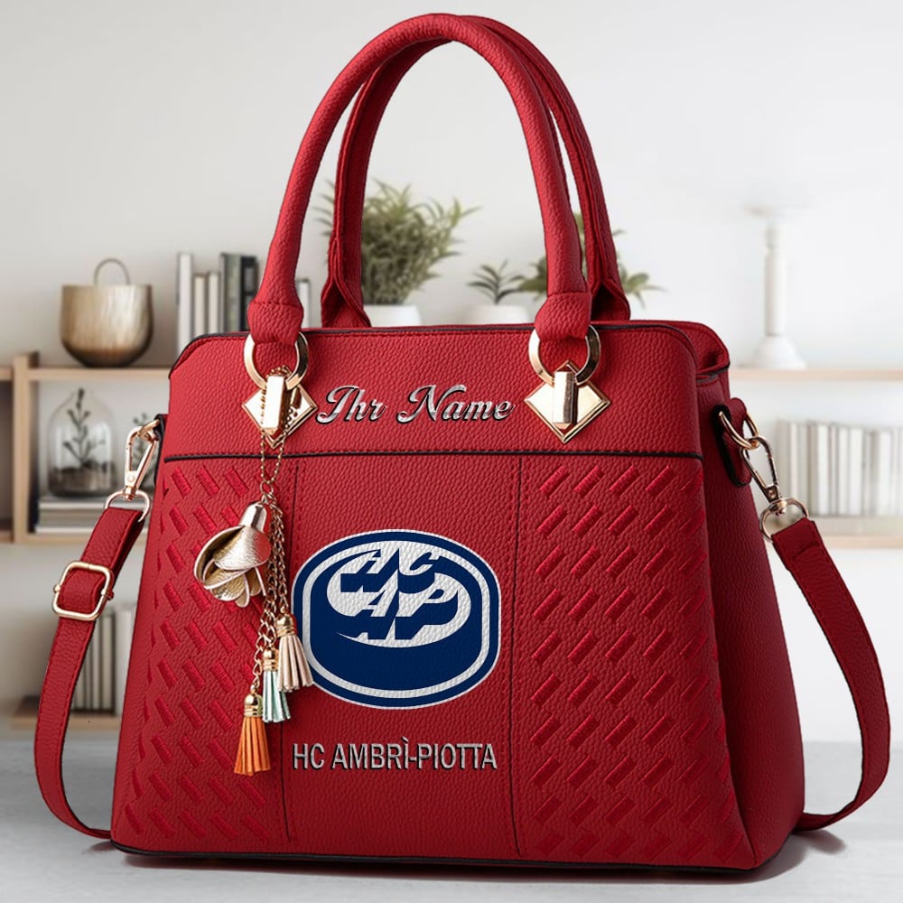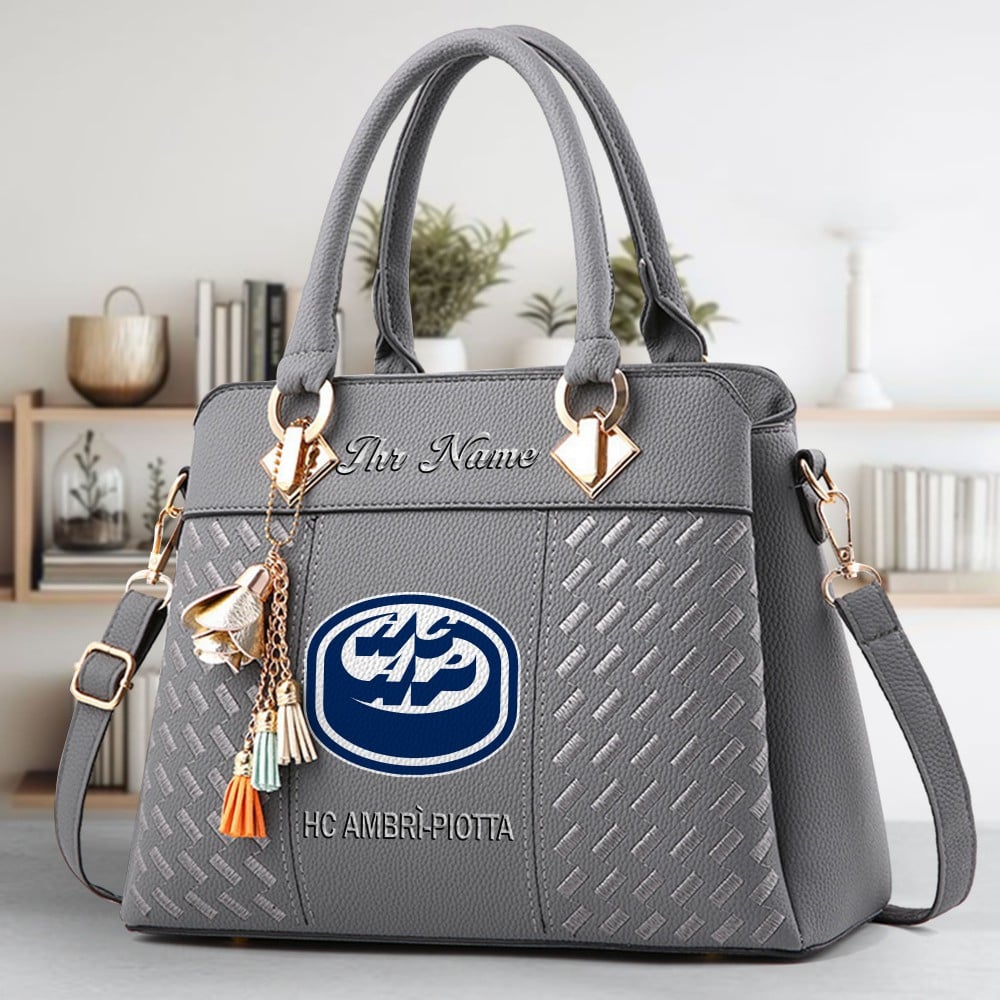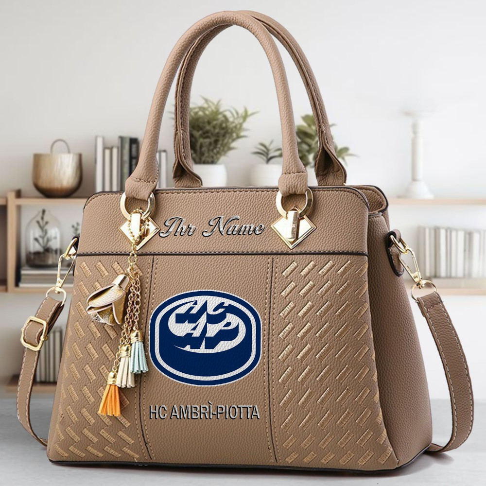 HC Ambri Piotta Logo Crossbody Zip Hand Bag With Tassel Custom Name For Women