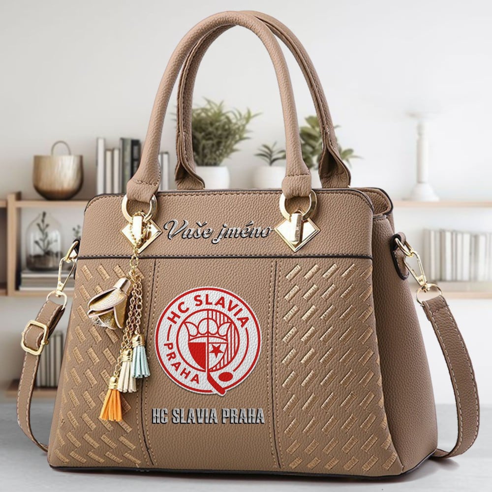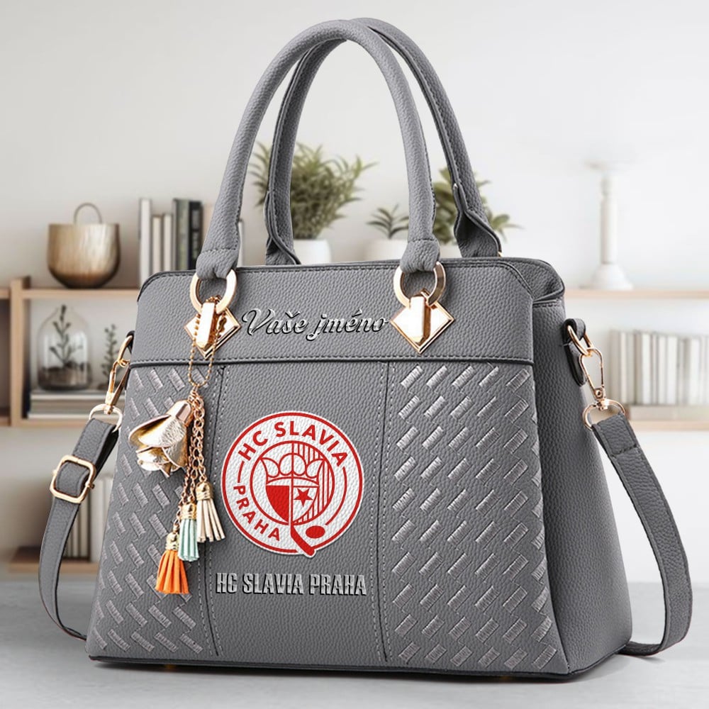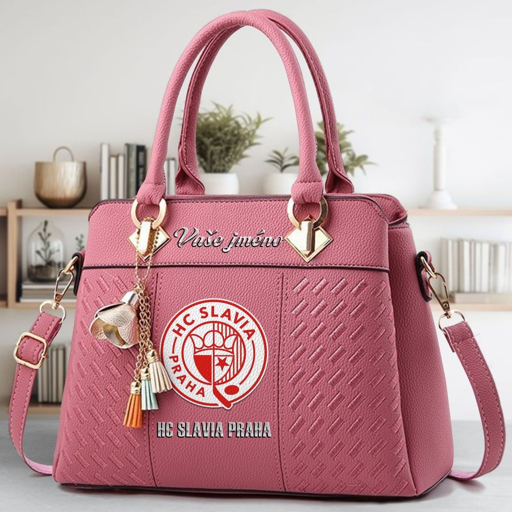 HC Slavia Praha Logo Crossbody Zip Hand Bag With Tassel Custom Name For Women