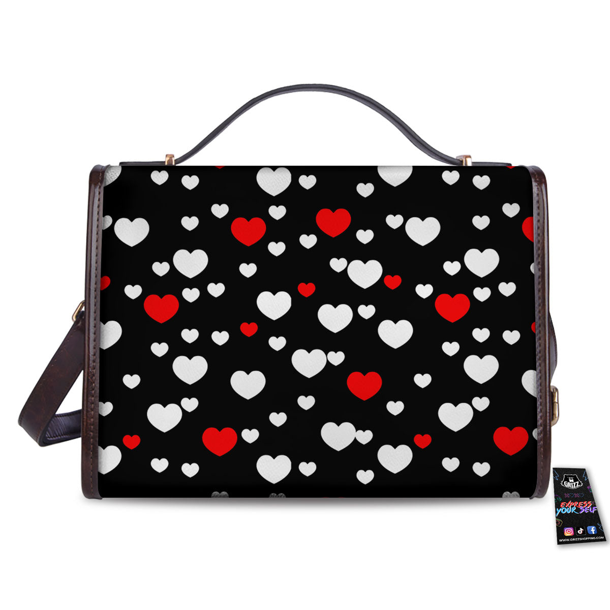 Heart White And Red Print Pattern Women’s Satchel Bag