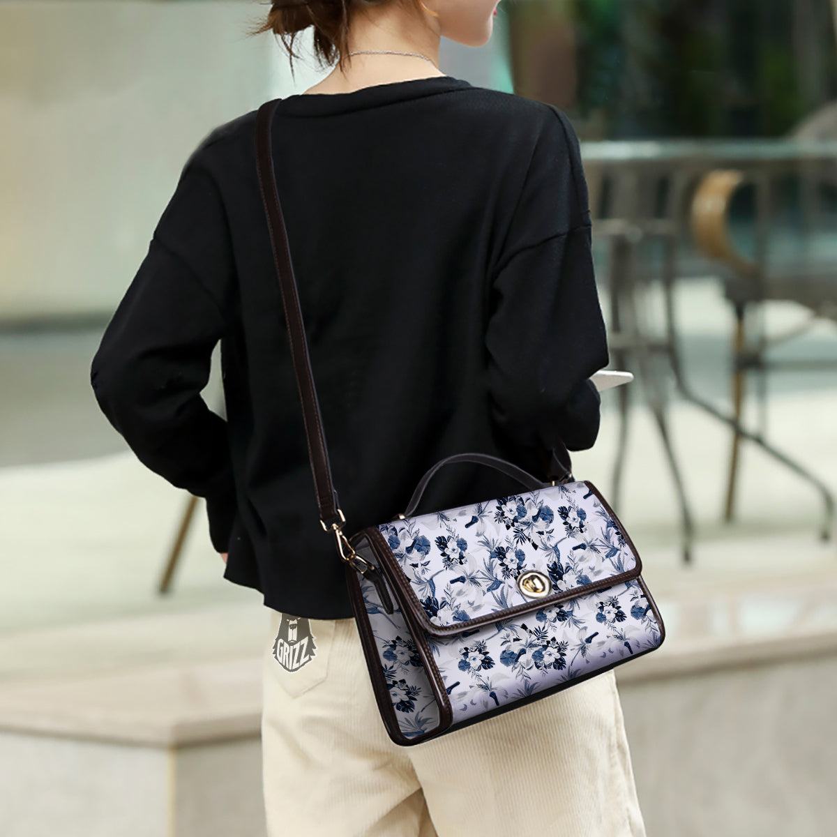 Hibiscus Floral White And Blue Print Pattern Women’s Satchel Bag