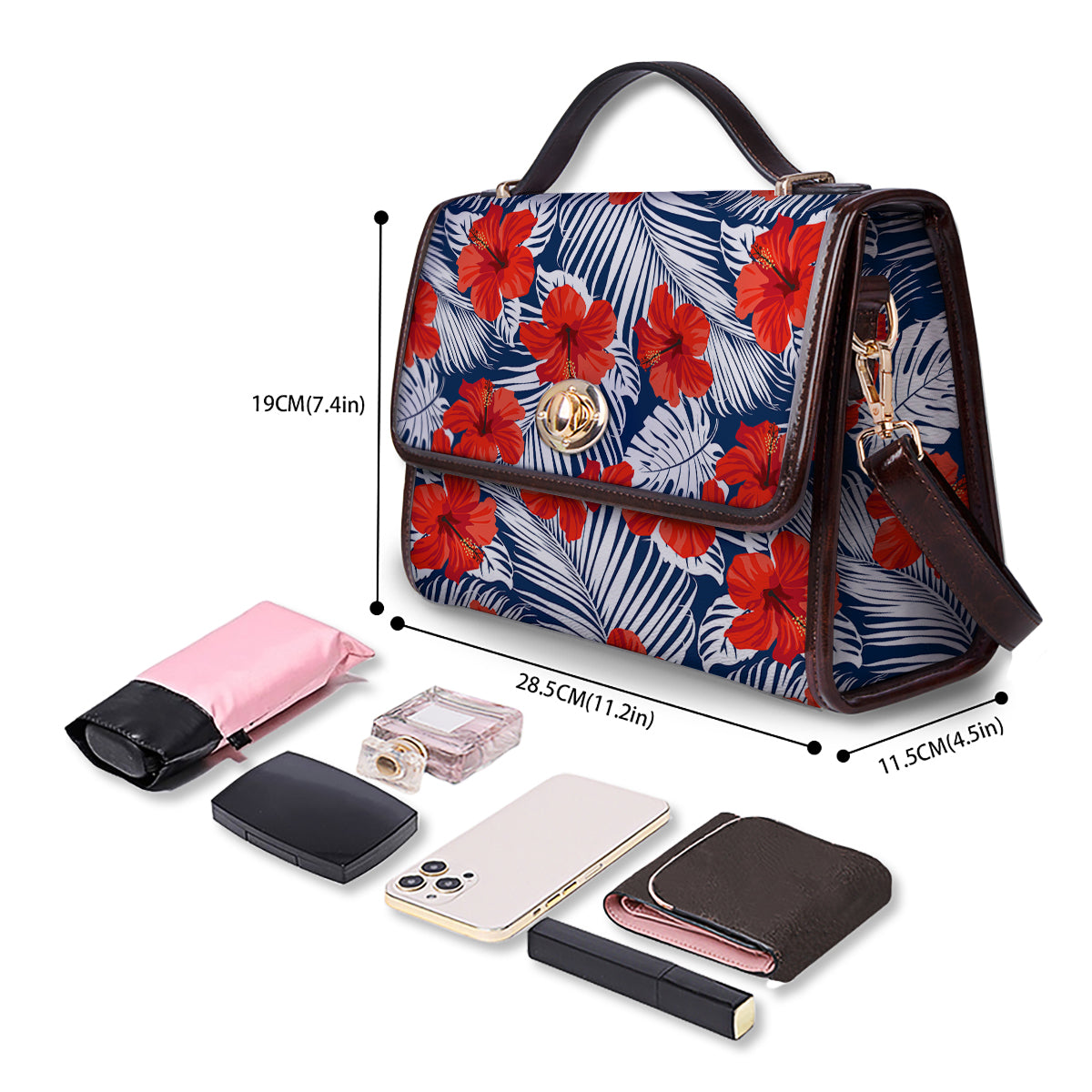 Hibiscus White Leaves Print Pattern Women’s Satchel Bag