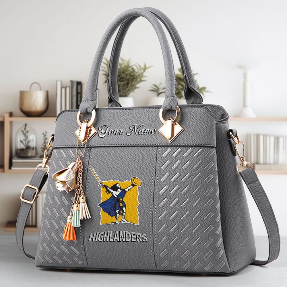 Highlanders Logo Crossbody Zip Hand Bag With Tassel Custom Name For Women
