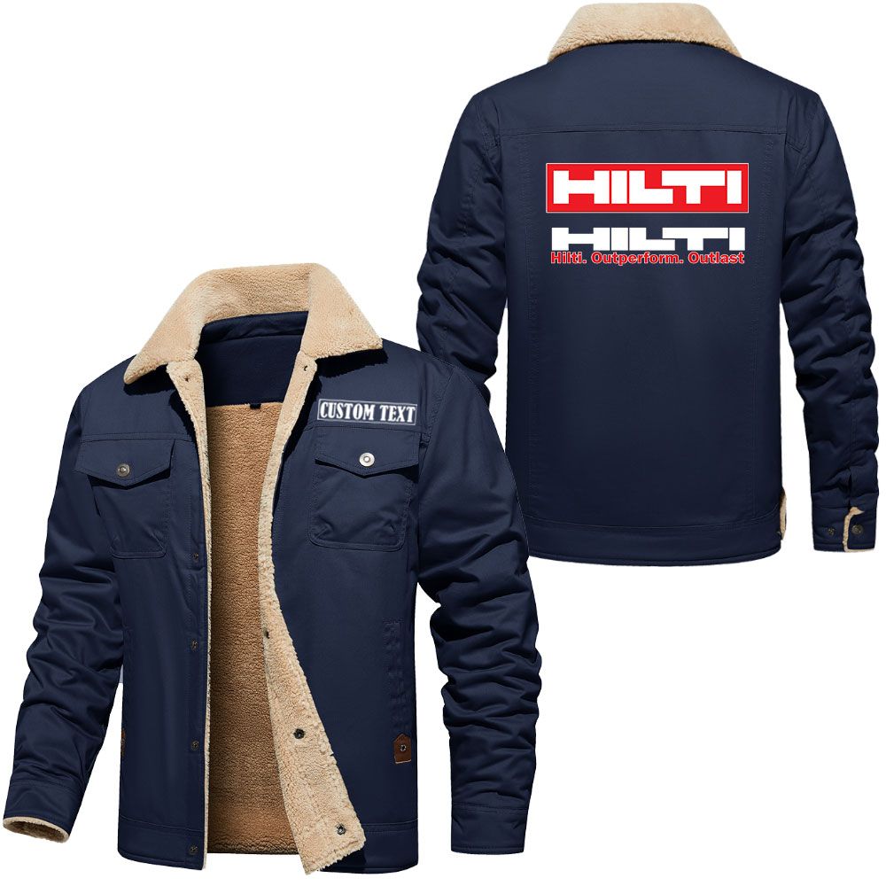 Hilti Logo Custom Name Cargo Fleece Lined Cotton Jacket Stylish Warm Personalized Outerwear