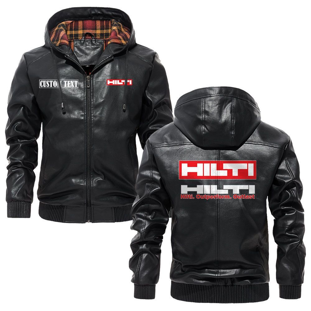 Hilti Logo Custom Name Leather Hoodie Jacket Comfortable Personalized Outerwear