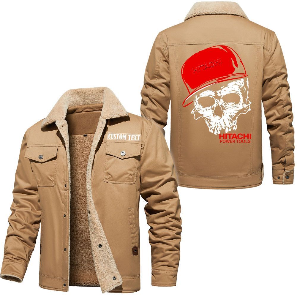Hitachi Logo Custom Name Cargo Fleece Lined Cotton Jacket Personalized Outerwear with Skull Design