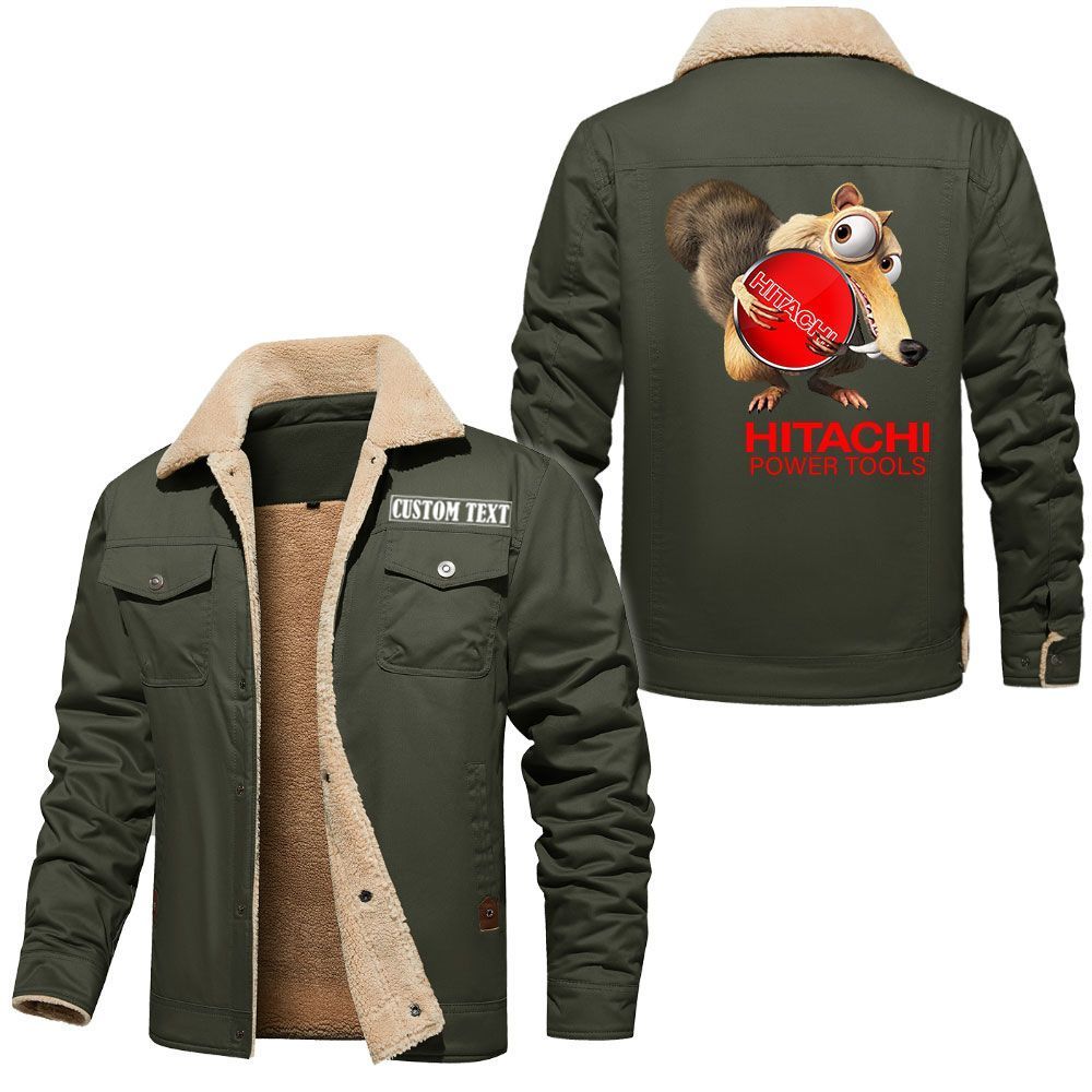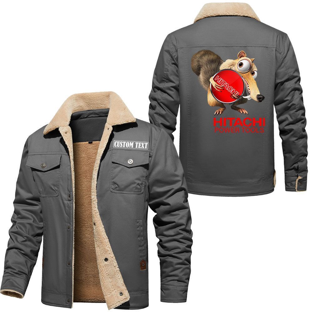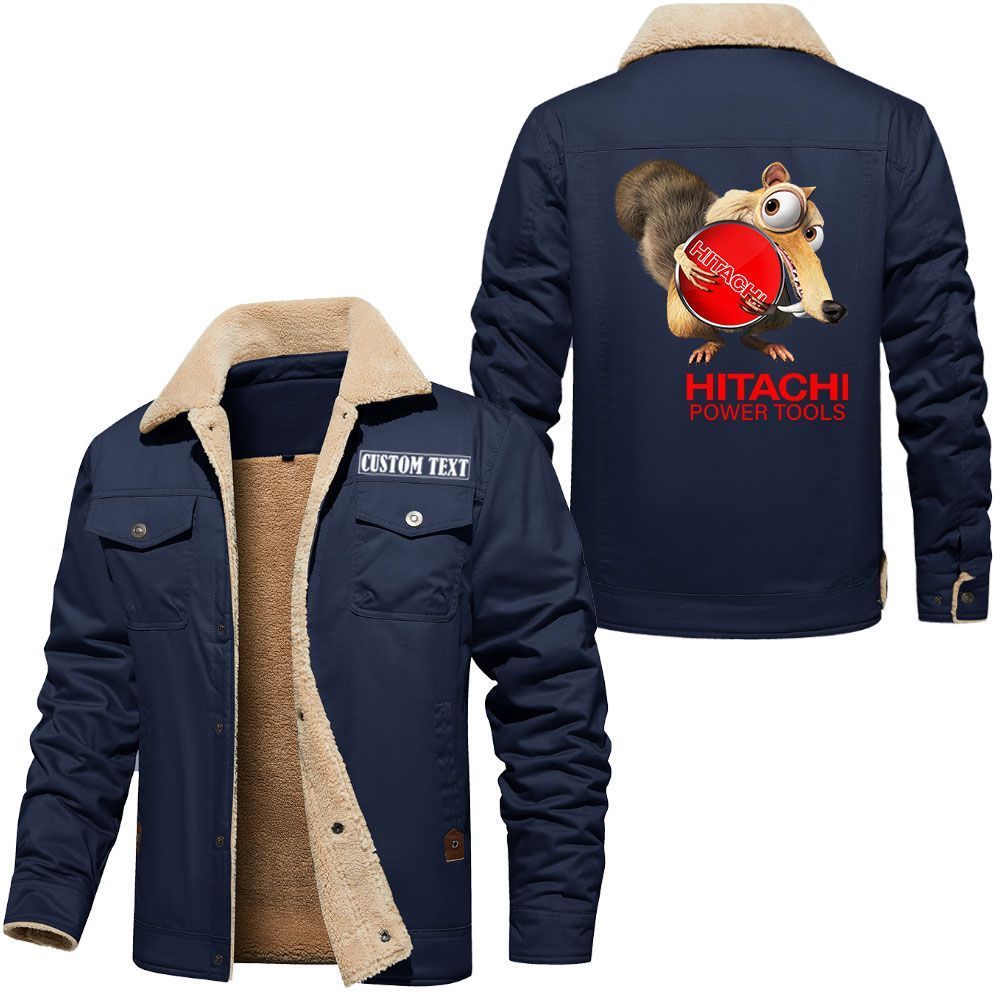 Hitachi Logo Custom Name Cargo Fleece Lined Cotton Jacket Scrat Ice Age Design Personalized Outerwear