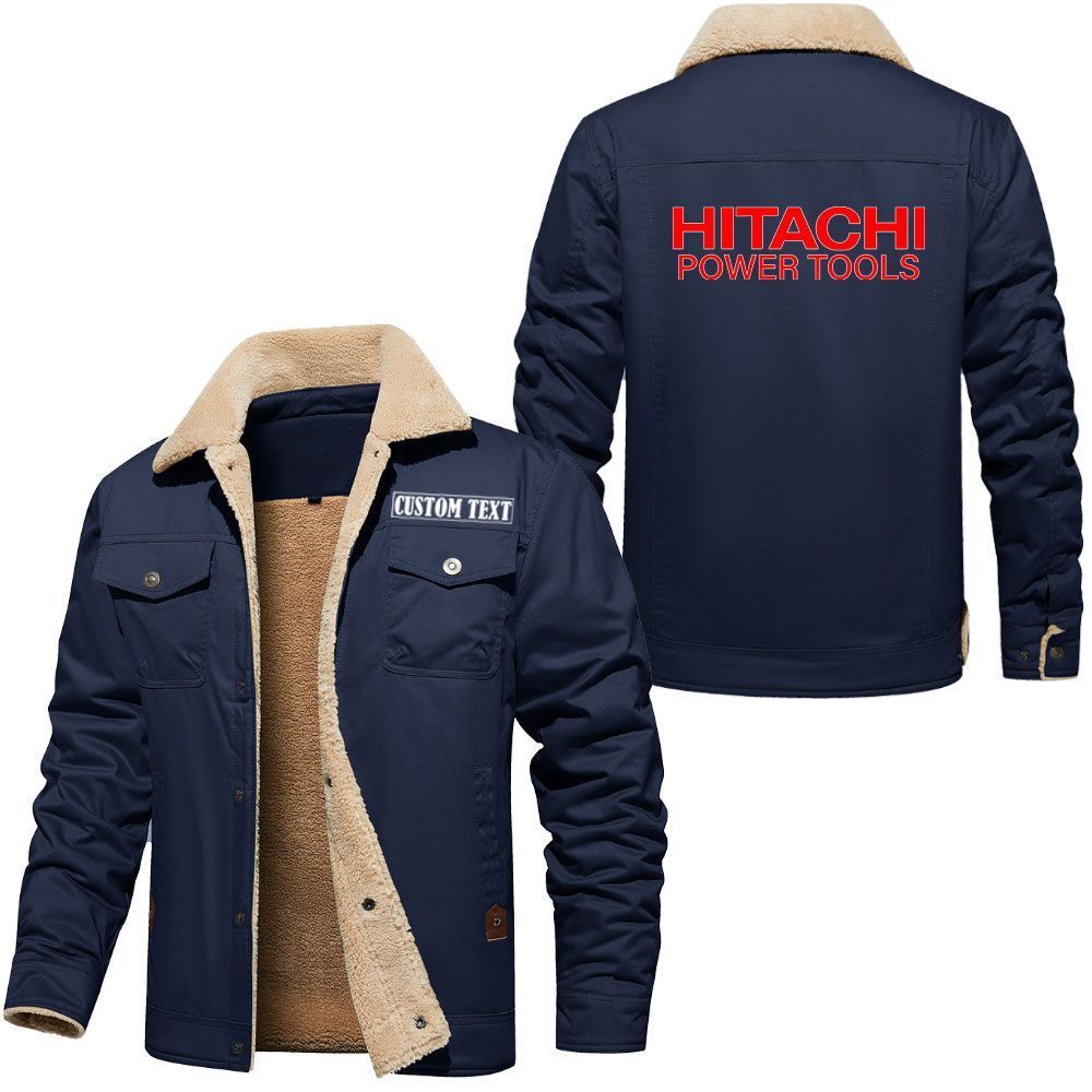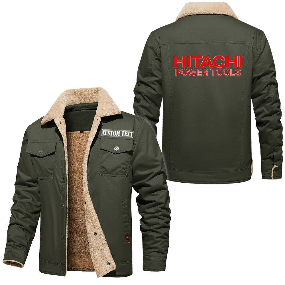 Hitachi Logo Custom Name Cargo Fleece Lined Cotton Jacket Stylish Warm Personalized Outerwear