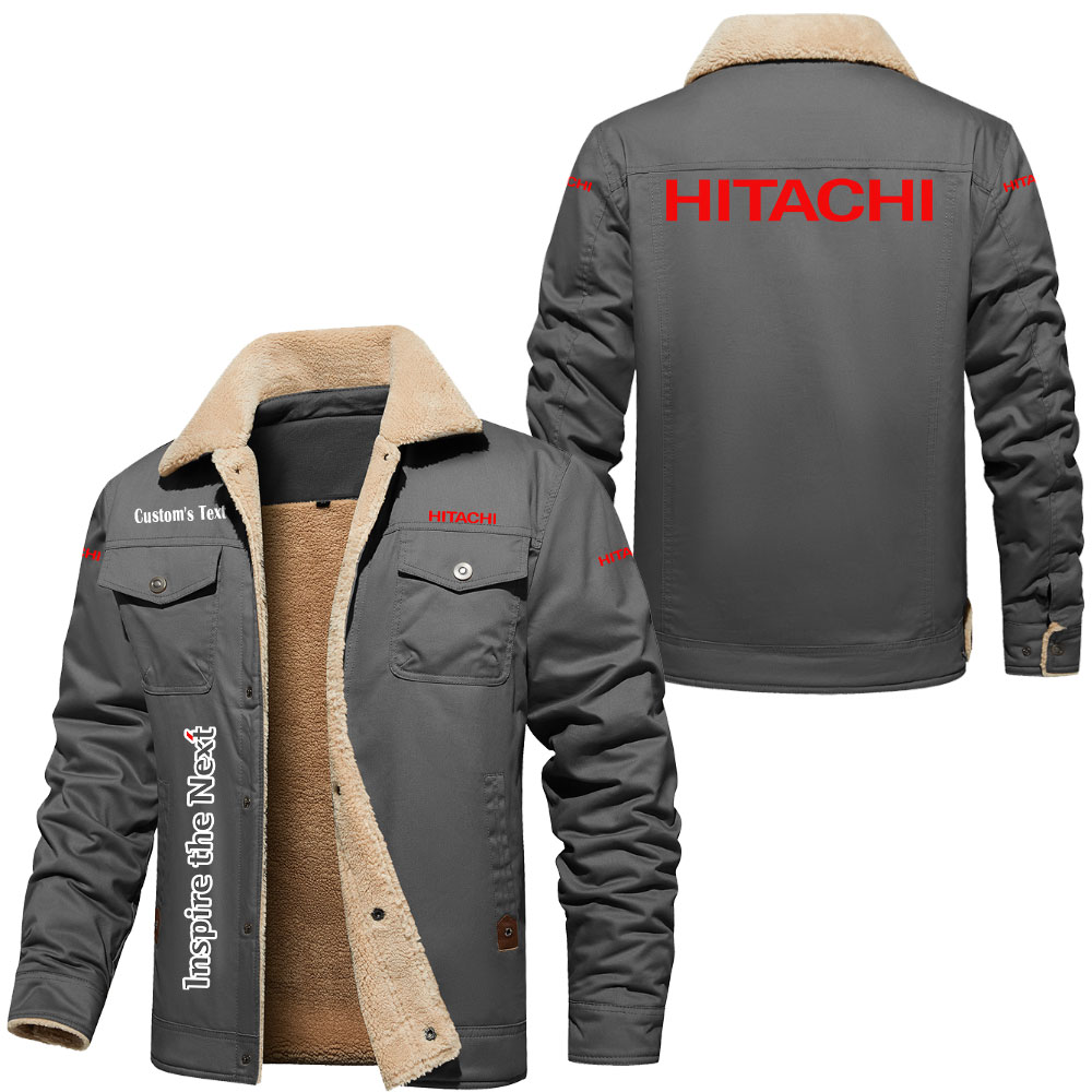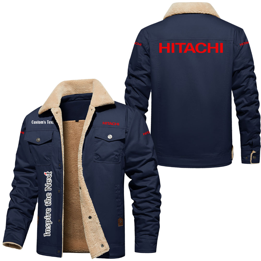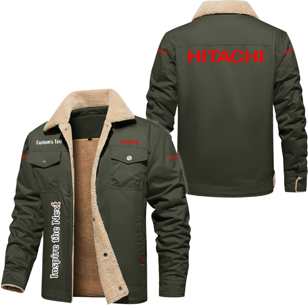 Hitachi Logo Custom Text Cargo Fleece Lined Cotton Jacket